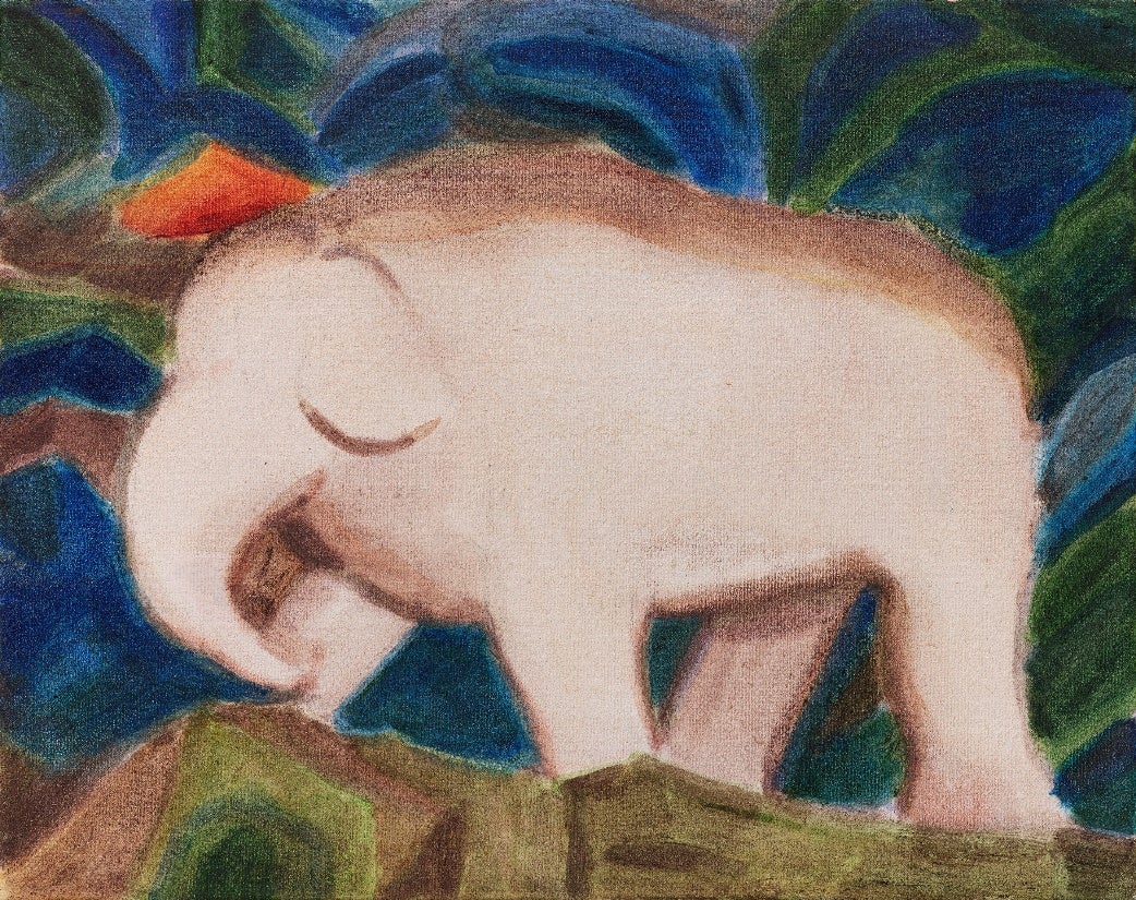 Drawing inspiration from both Eastern and Western art history, Shi Zhiying captures the life-movement, materiality, and ephemerality of oriental spirits through the language of Western oil painting, utilising colour, texture, and brushstrokes. Religious figures and animals with deep spiritual/cultural connotations are Shi’s most recent creations, such as Auspicious Animal No. 5, Goddess of Music No. 4, and Little Elephant presented in the exhibition that were created over the last year. Auspicious Animal No. 5 (illustrated page 1) highlighted here features a precious blue gem, which was a central subject matter of the artist’s solo show at WHITE SPACE in 2022. Set besides the smooth yet textural auspicious animal, the temporal nature of both creations are reflected as they dissolve into each other, capturing the continuous transformations that occur between matter, the picture plane and the state of perception.