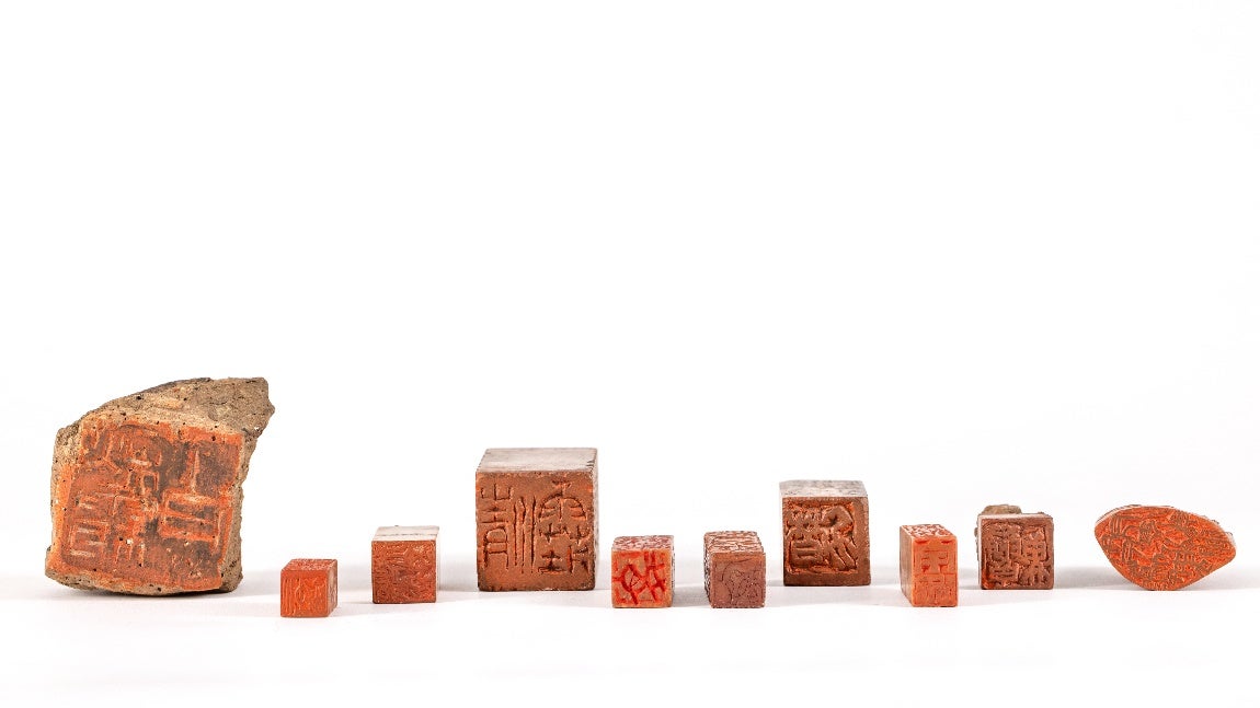 Since childhood, Huang Yuxing was exposed to calligraphy, seal engraving, and traditional Chinese painting. This exhibition also presents a rare collection of ten stamps carved by the artist in the 1990s. This collection includes two seals with names and eight leisure seals. His stamps cover many subjects, combining adherence to ancient methods with expressions of contemporary styles. The engraving style is inspired by the Eight Masters of Xiling, mainly using the small seal script that originated in the Qin Dynasty while incorporating both red and white scripts. Huang Yuxing's seal works integrate calligraphy, painting, and childlike innocence into a unique aesthetic expression that complements each other without imitating ancient artists.