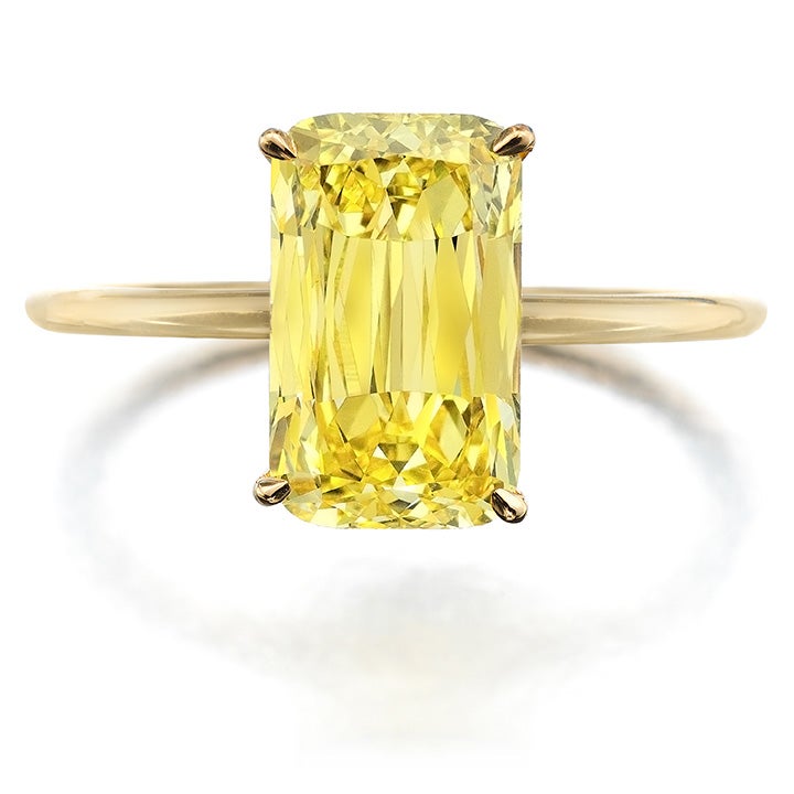 Accompanied by GIA report no. 1162900611, stating that the diamond is Fancy Vivid Yellow, Natural Color, VS2 Clarity, together with a letter from William Goldberg, dated 2 April 2015, stating that the 2.49 carat diamond is the only Fancy Vivid Ashoka cut diamond to date.