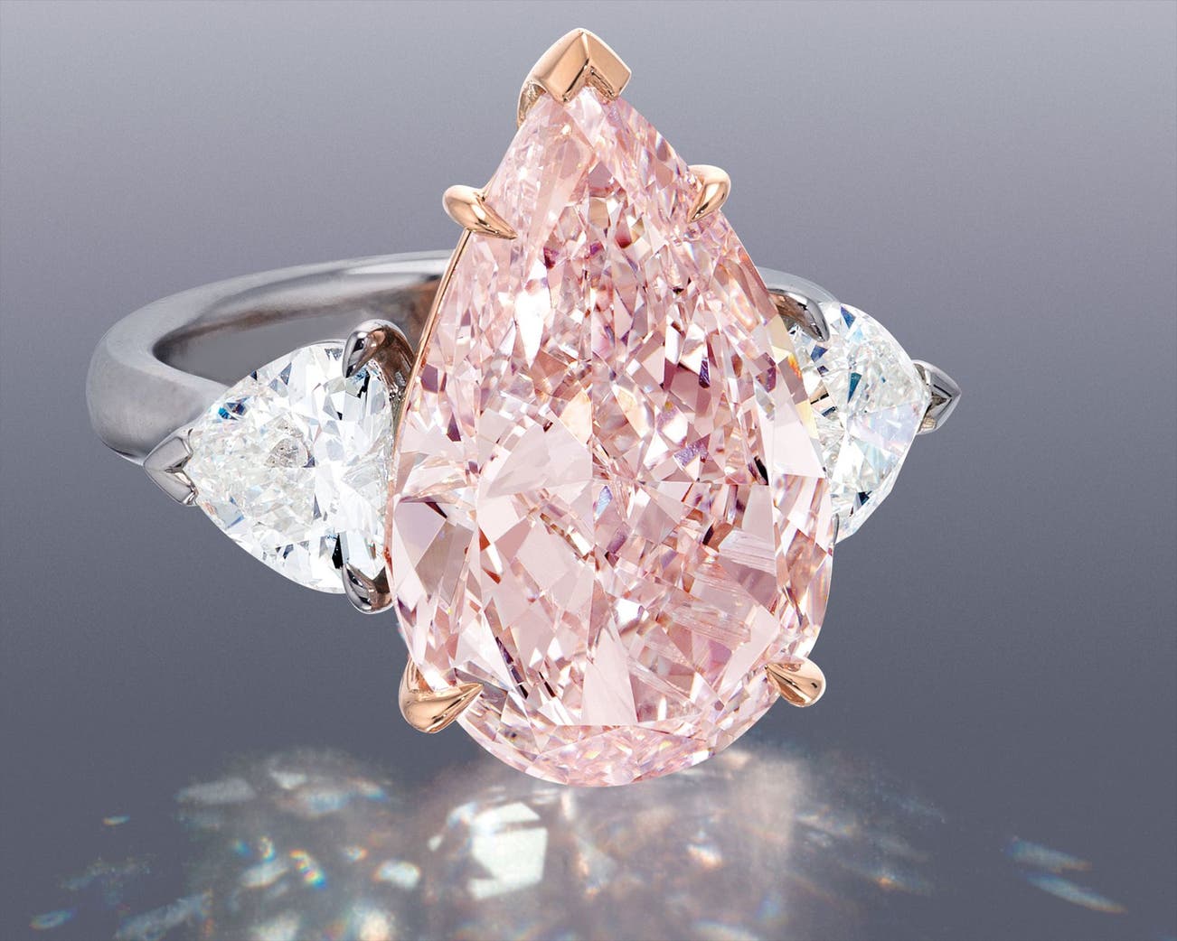 7.93克拉 珍稀梨形彩粉紅色 VS1 鑽石配鑽石戒指
