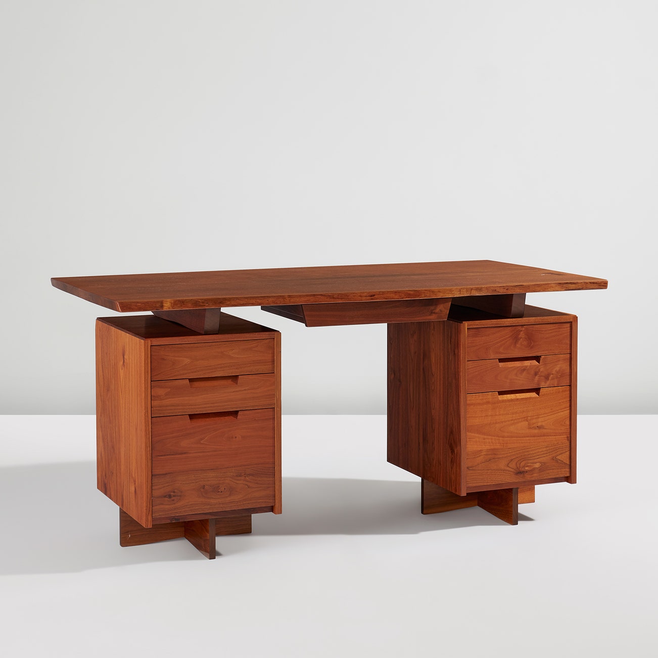 American | B. 1905 D. 1990Working out of his compound in rural New Hope, Pennsylvania, George Nakashima produced some of the most original and influential furniture designs of the post-war era. Nakashima aimed to give trees a second life, choosing solid wood over veneers and designing his furniture to highlight the inherent beauty of the wood, such as the form and grain. To this end, his tables often feature freeform edges, natural fissures and knot holes. Nakashima was an MIT-trained architect and traveled widely in his youth, gaining exposure to modernist design the world over.