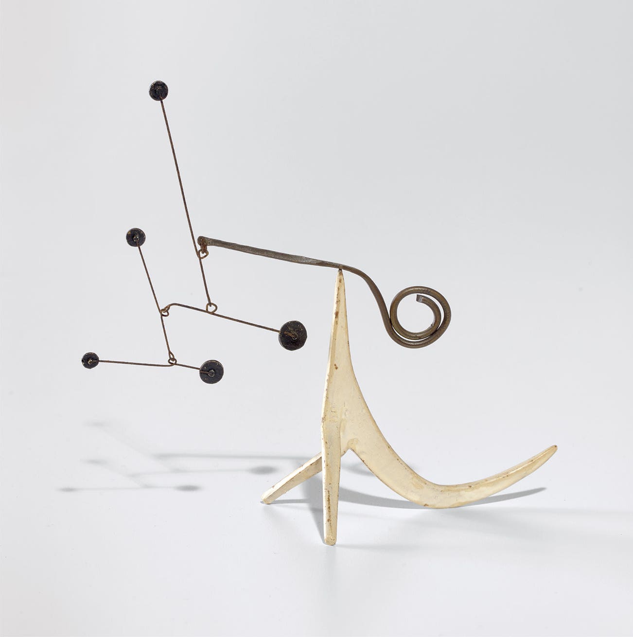 Alexander Calder worked as an abstract sculptor and has been commonly referred to as the creator of the mobile. He employed industrious materials of wire and metal and transformed them into delicate geometric shapes that respond to the wind or float in air. Born into a family of sculptors, Calder created art from childhood and moved to Paris in 1926, where he became a pioneer of the international avant-garde. In addition to his mobiles, Calder produced an array of public constructions worldwide as well as drawings and paintings that feature the same brand of abstraction. Calder was born in Lawnton, Pennsylvania.