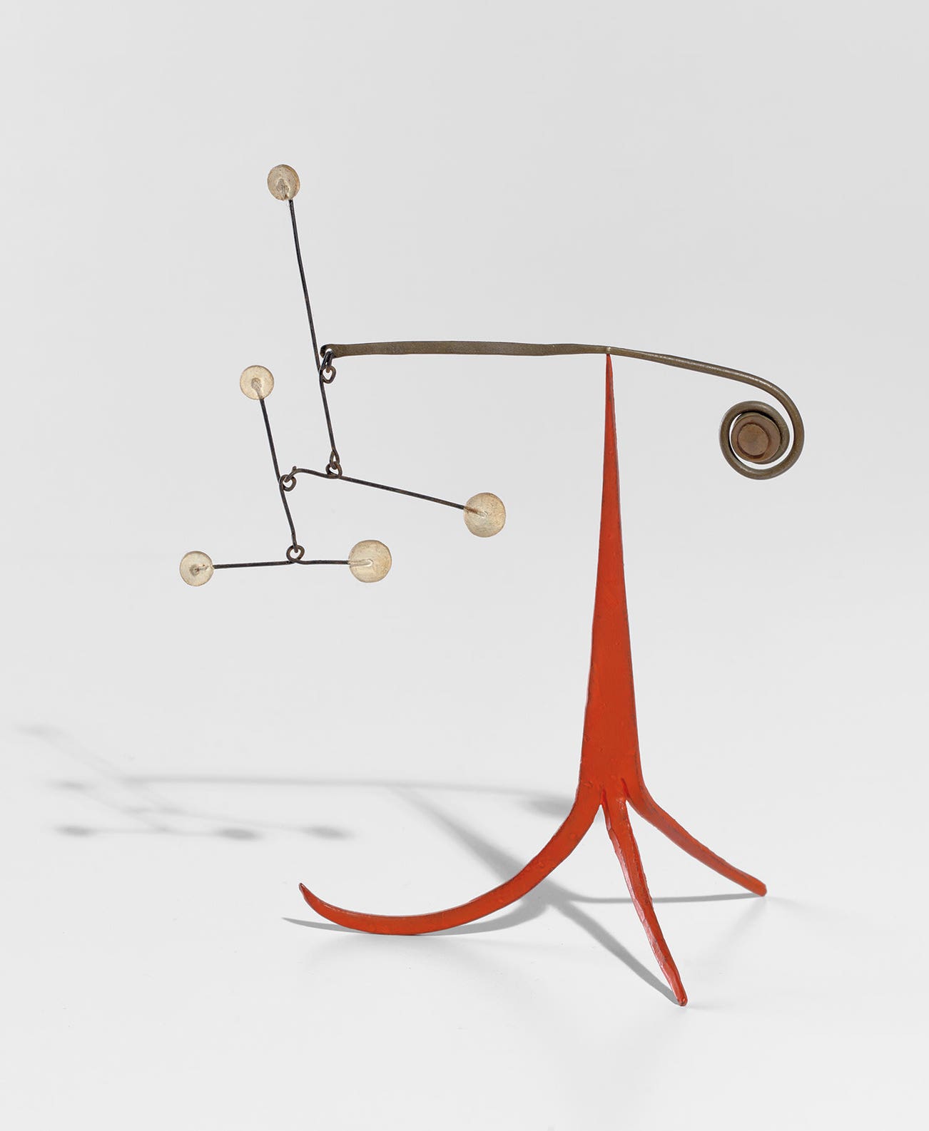 Alexander Calder worked as an abstract sculptor and has been commonly referred to as the creator of the mobile. He employed industrious materials of wire and metal and transformed them into delicate geometric shapes that respond to the wind or float in air. Born into a family of sculptors, Calder created art from childhood and moved to Paris in 1926, where he became a pioneer of the international avant-garde. In addition to his mobiles, Calder produced an array of public constructions worldwide as well as drawings and paintings that feature the same brand of abstraction. Calder was born in Lawnton, Pennsylvania.