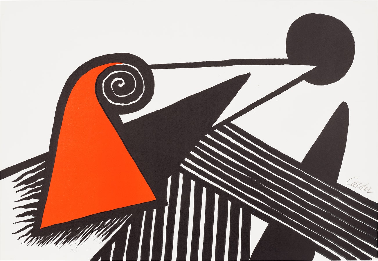 Alexander Calder worked as an abstract sculptor and has been commonly referred to as the creator of the mobile. He employed industrious materials of wire and metal and transformed them into delicate geometric shapes that respond to the wind or float in air. Born into a family of sculptors, Calder created art from childhood and moved to Paris in 1926, where he became a pioneer of the international avant-garde. In addition to his mobiles, Calder produced an array of public constructions worldwide as well as drawings and paintings that feature the same brand of abstraction. Calder was born in Lawnton, Pennsylvania.