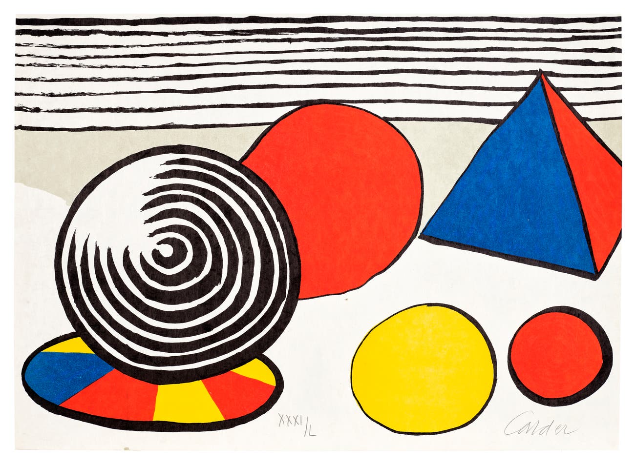 Alexander Calder worked as an abstract sculptor and has been commonly referred to as the creator of the mobile. He employed industrious materials of wire and metal and transformed them into delicate geometric shapes that respond to the wind or float in air. Born into a family of sculptors, Calder created art from childhood and moved to Paris in 1926, where he became a pioneer of the international avant-garde. In addition to his mobiles, Calder produced an array of public constructions worldwide as well as drawings and paintings that feature the same brand of abstraction. Calder was born in Lawnton, Pennsylvania.