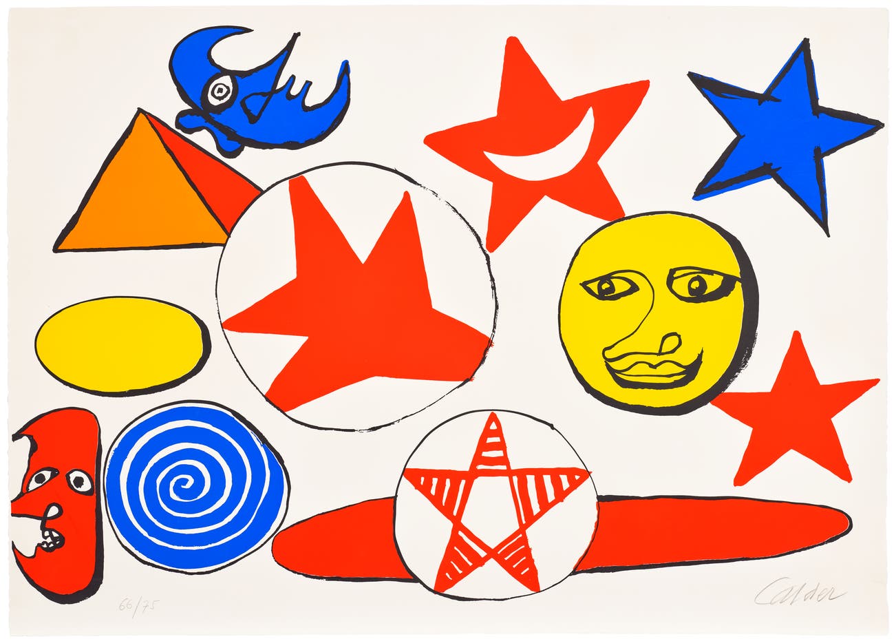 American | B. 1898 D. 1976Alexander Calder worked as an abstract sculptor and has been commonly referred to as the creator of the mobile. He employed industrious materials of wire and metal and transformed them into delicate geometric shapes that respond to the wind or float in air. Born into a family of sculptors, Calder created art from childhood and moved to Paris in 1926, where he became a pioneer of the international avant-garde. In addition to his mobiles, Calder produced an array of public constructions worldwide as well as drawings and paintings that feature the same brand of abstraction. Calder was born in Lawnton, Pennsylvania.