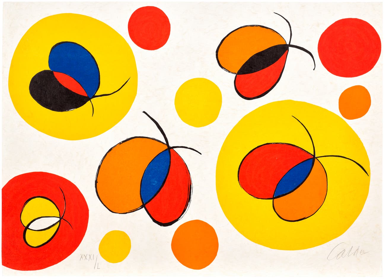 American | B. 1898 D. 1976Alexander Calder worked as an abstract sculptor and has been commonly referred to as the creator of the mobile. He employed industrious materials of wire and metal and transformed them into delicate geometric shapes that respond to the wind or float in air. Born into a family of sculptors, Calder created art from childhood and moved to Paris in 1926, where he became a pioneer of the international avant-garde. In addition to his mobiles, Calder produced an array of public constructions worldwide as well as drawings and paintings that feature the same brand of abstraction. Calder was born in Lawnton, Pennsylvania.