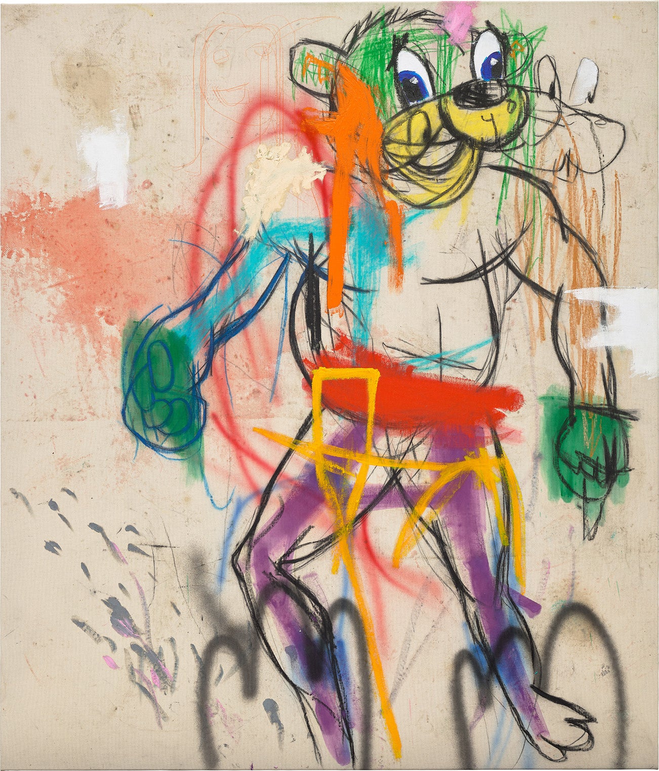 油棒 炭筆 壓克力 噴漆 畫布