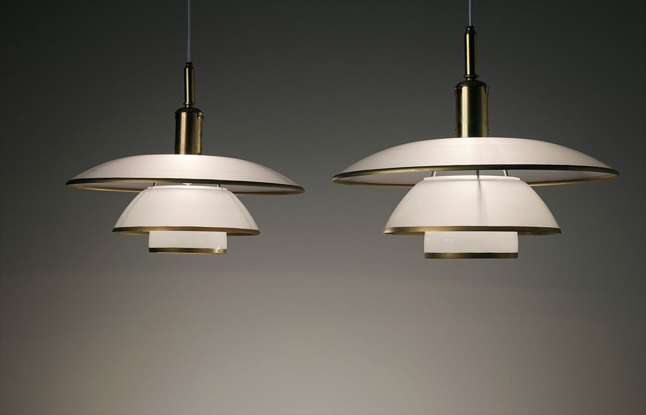 Manufactured by Louis Poulsen, Copenhagen, Denmark. Each light fixture impressed with PAT. APPL..