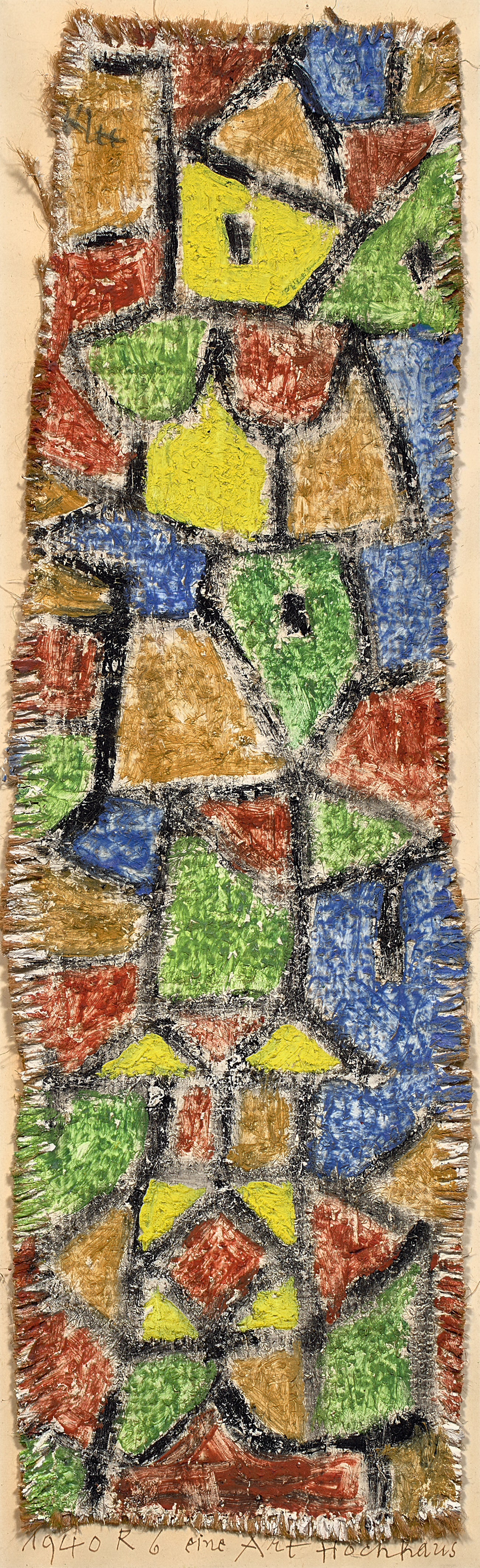 款識:Klee(麻布左上方)1940 R 6 eine Art Hochhaus(圖像下方邊緣)