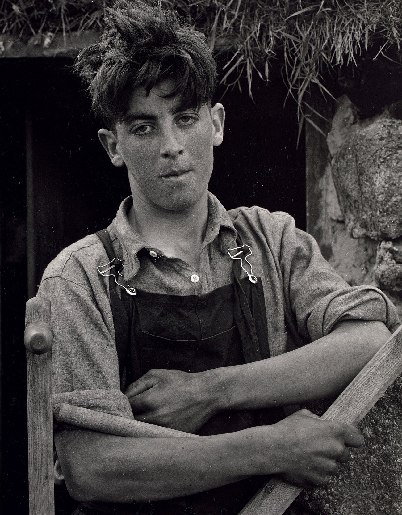 According to Paul Strand authority Anthony Montoya, Strand made two negatives of the subject pictured here, Ewan MacLeod. The version offered here is the one that Strand selected for inclusion in Tir a’Mhurain, his definitive 1962 book on his Outer Hebrides work of the 1950s. Mr. Montoya has located only two other prints of this image: a contact print in a private collection, and an enlargement in the collection of the Philadelphia Museum of Art.