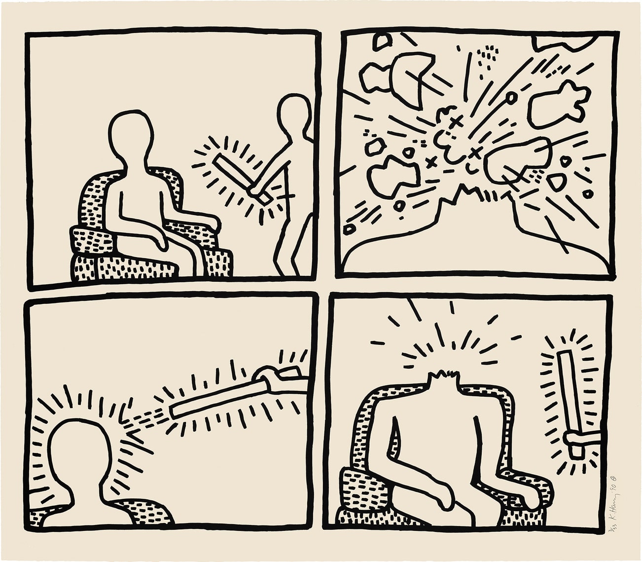 American | B. 1958 D. 1990Haring's art and life typified youthful exuberance and fearlessness. While seemingly playful and transparent, Haring dealt with weighty subjects such as death, sex and war, enabling subtle and multiple interpretations.
