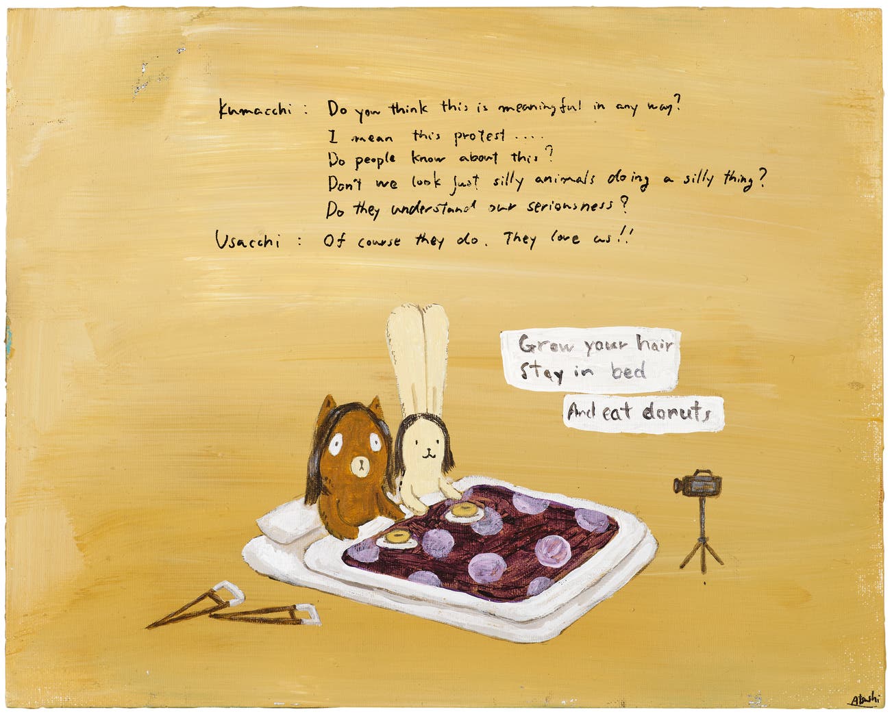 款識:Atsushi(右下);《John and Yoko?》Atsushi 2008(畫背)