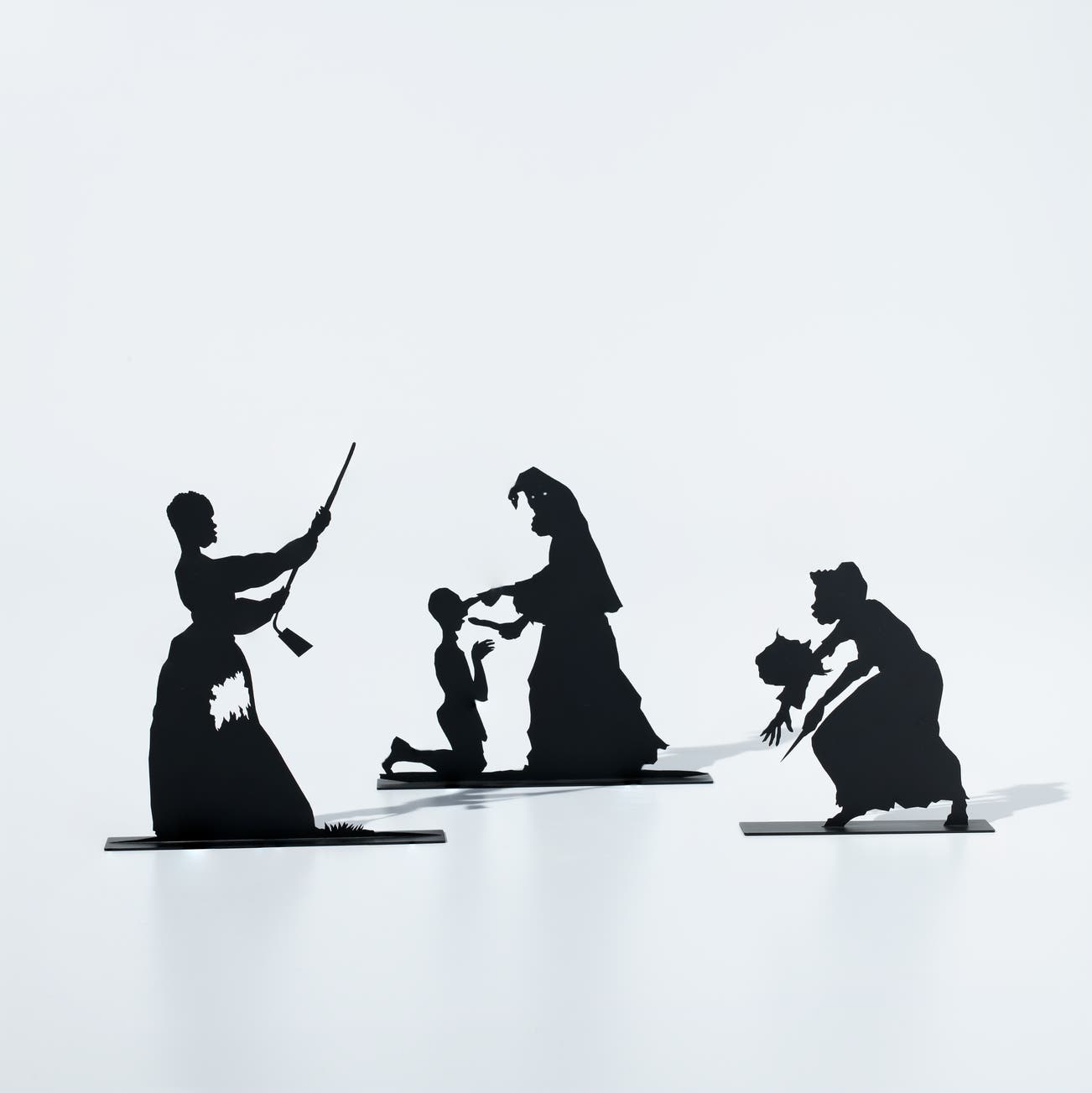 American | 1969Kara Walker sugarcoats nothing. Her masterpiece public art commission, A Subtlety, 2014, was a 35-foot high racial confrontation of artifact, mythology and American history in the form of a sphinx packed from 80-tonnes of Domino white sugar crystals. Walker's practice first caught audiences with her haunting paper cutout silhouettes retelling the injustices of slavery and the foundations of American capitalist culture.