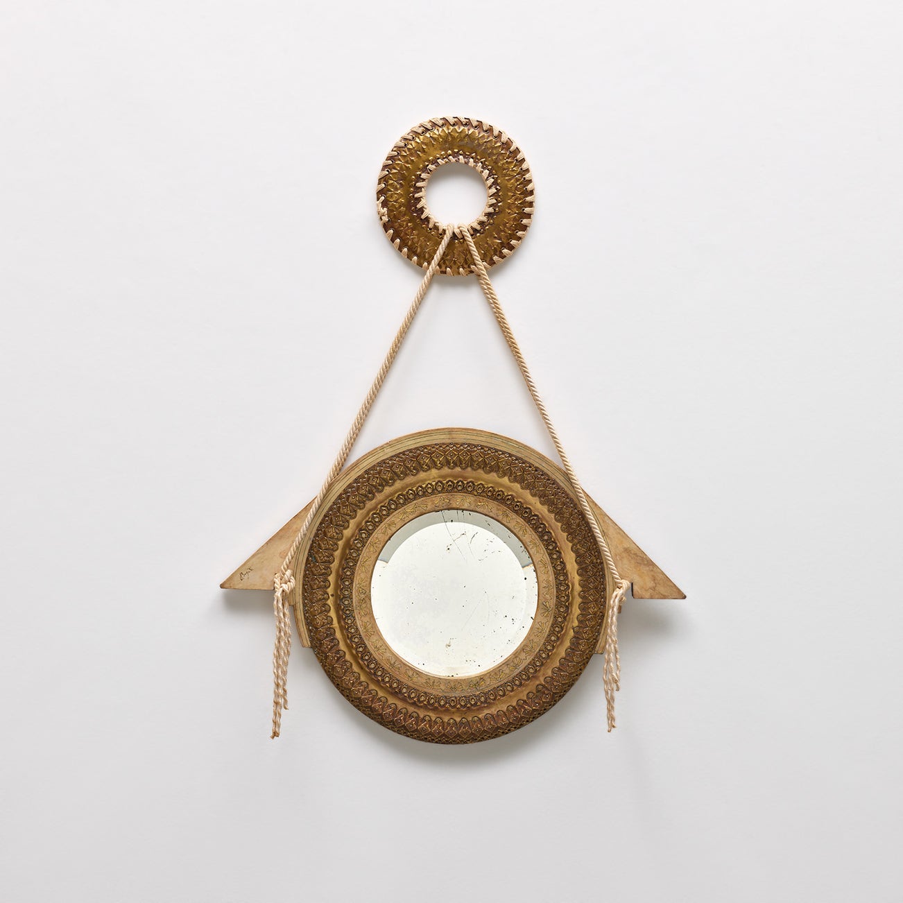 部分上色牛皮紙覆蓋木材 「排斥」黃銅 鏡面玻璃 布繩