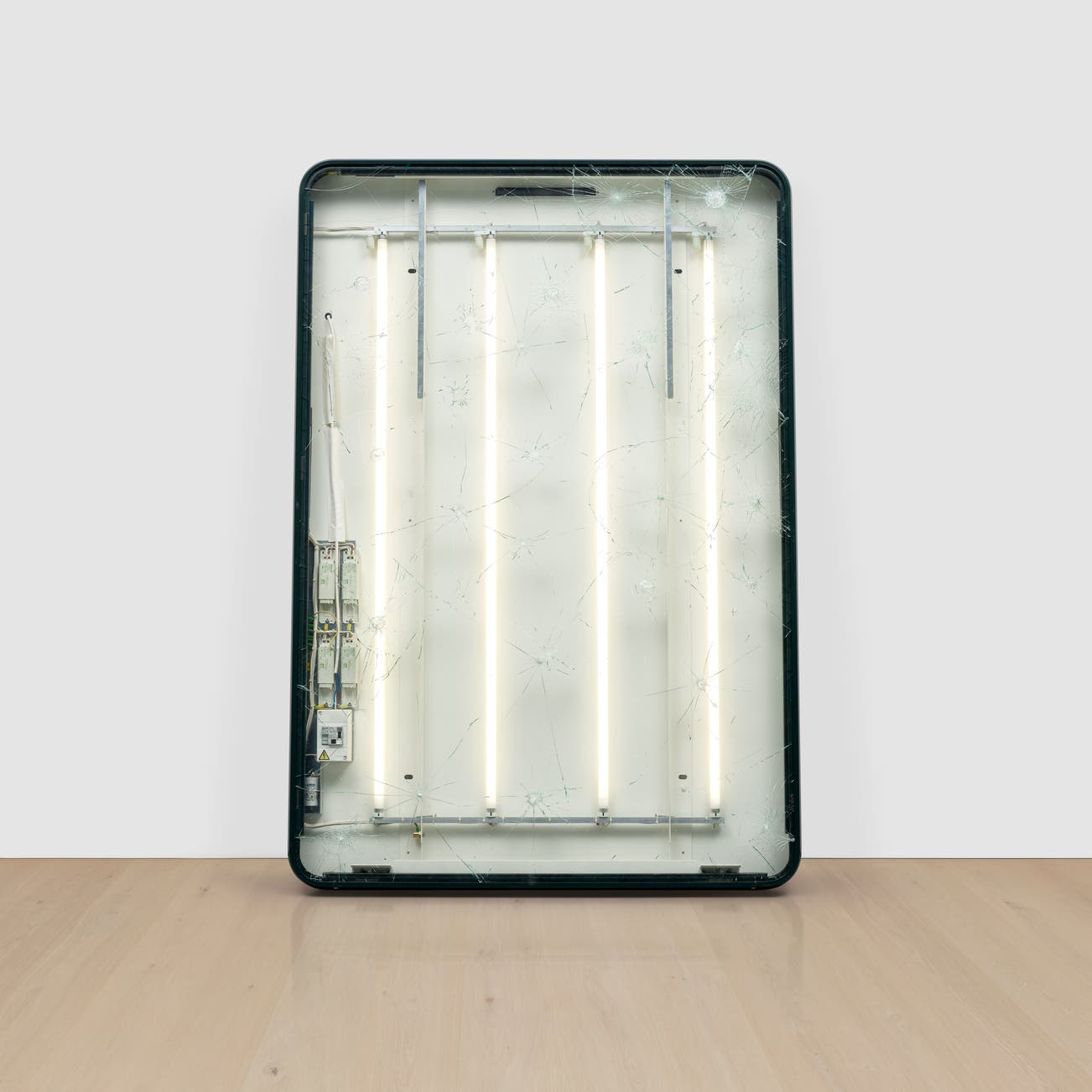 霓虹燈管 電線 玻璃 膠帶 裱於藝術家金屬盒框