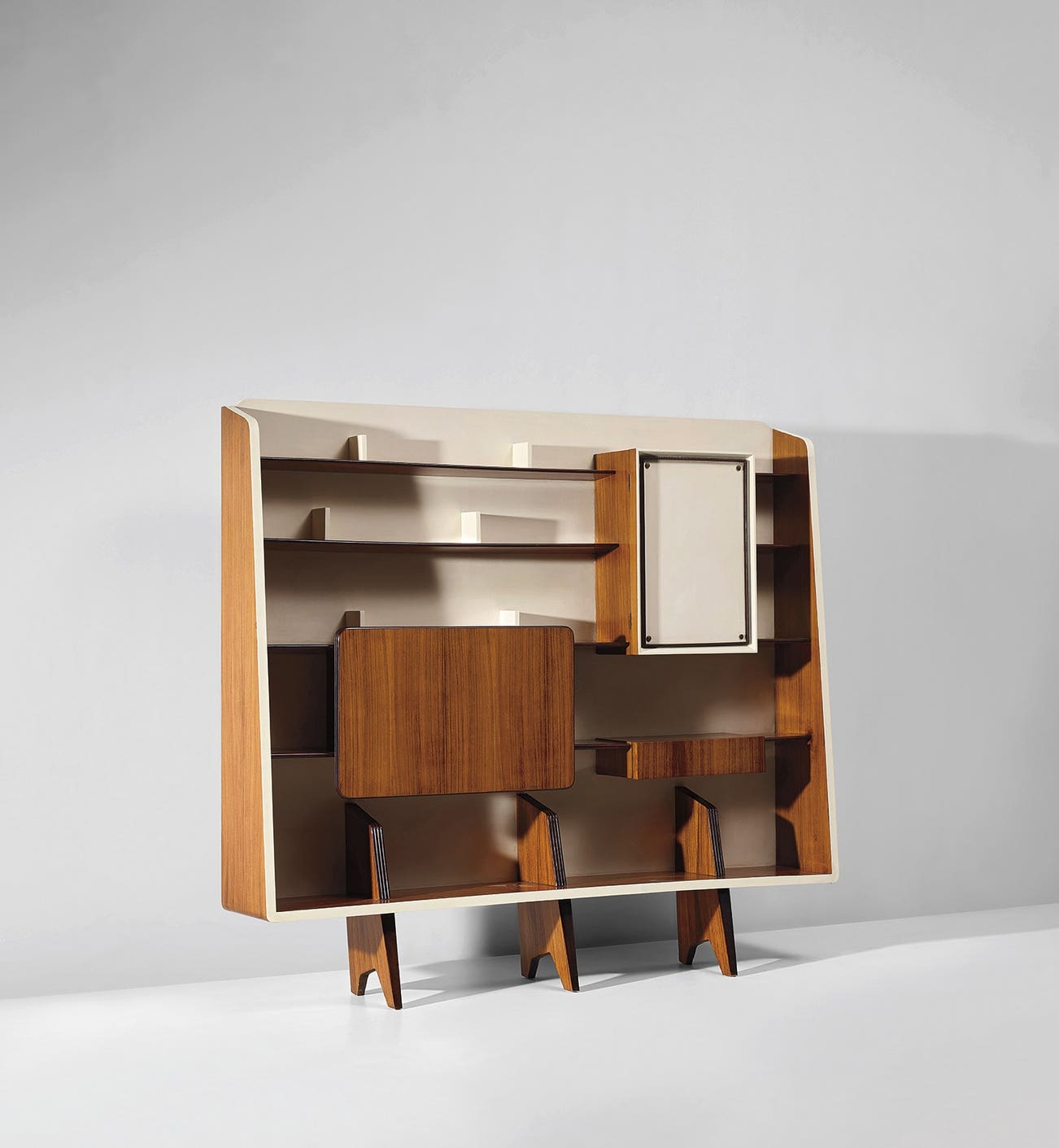 Rare bookcase with integrated drinks cabinet, designed for the 'Prima mostra dell'arredamento', Como