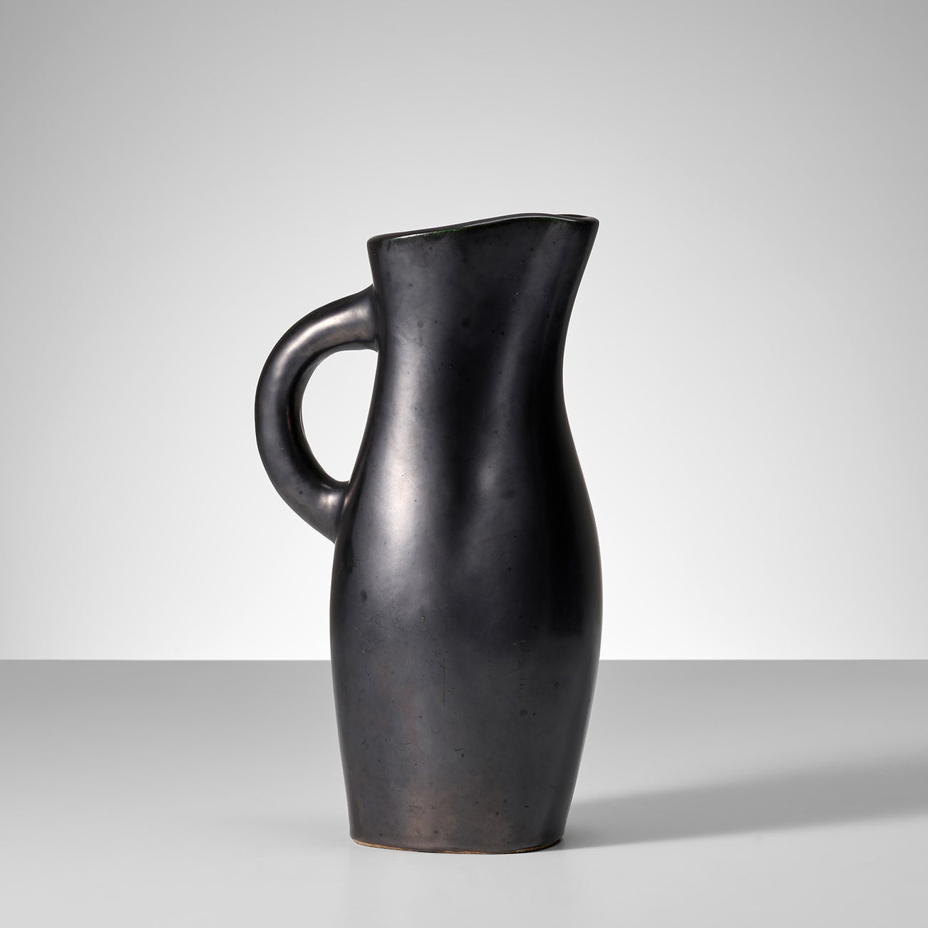 French | B. 1910 D. 1964Working out of his studio in Paris (and later in Aix-en-Provence), Georges Jouve produced sculptural ceramics for modernist interiors. Upon the invitation of Jacques Adnet, the director of the Compagnie des Arts Français (CAF), Jouve participated in various salons internationally and within France, including the Salon des Artistes Décorateurs. He created rigorously simple yet soft and playful forms, including plump, contrapposto vessels, rotund pitchers and cylindrical vases. His tireless experimentation of glazes led to a palette of perfect matte blacks, bone whites and joyful pops of lime green, lemony yellow and, occasionally, selenium red. Jouve's ceramics echo the organic modernism of his CAF colleagues, such as Charlotte Perriand and Serge Mouille.