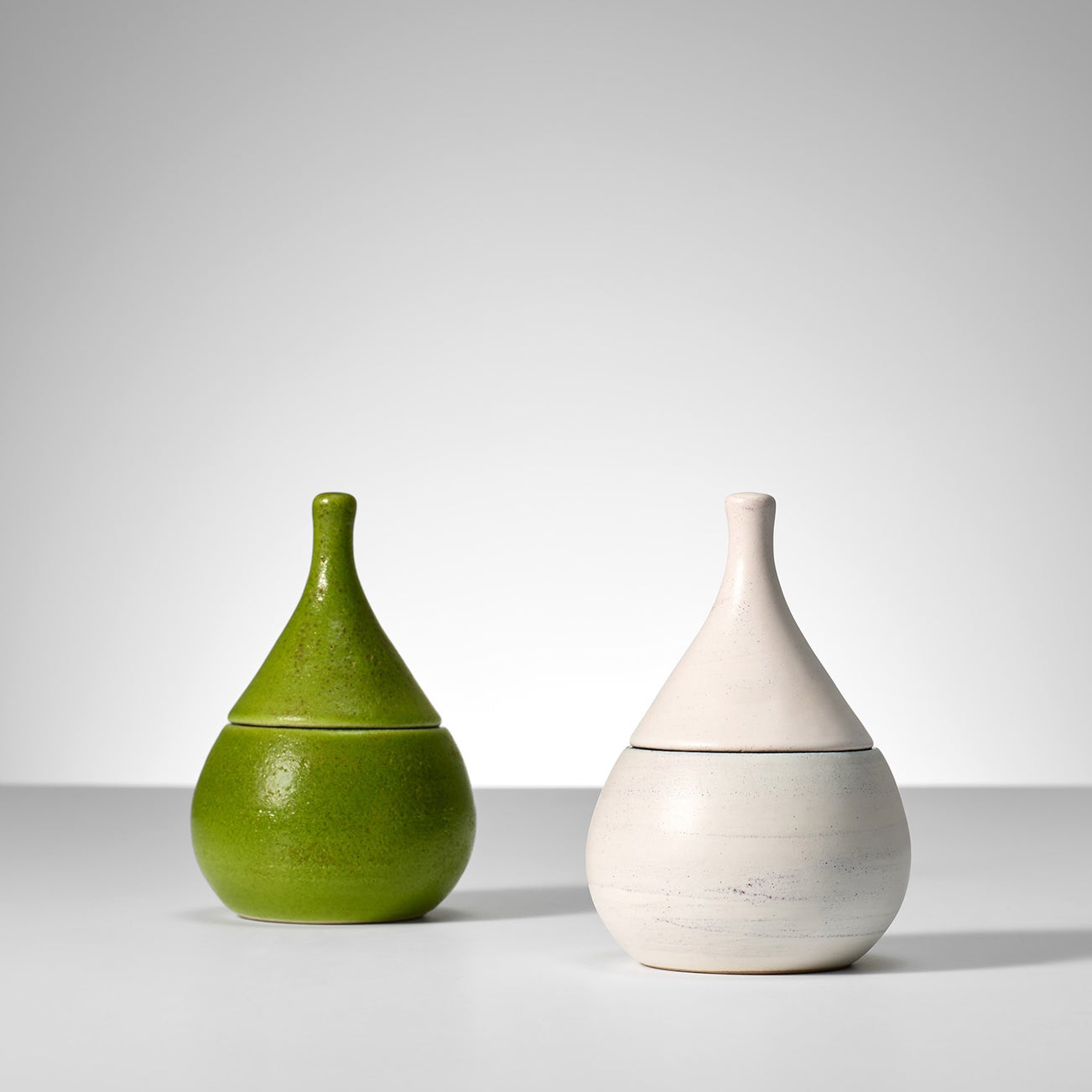 French | B. 1910 D. 1964Working out of his studio in Paris (and later in Aix-en-Provence), Georges Jouve produced sculptural ceramics for modernist interiors. Upon the invitation of Jacques Adnet, the director of the Compagnie des Arts Français (CAF), Jouve participated in various salons internationally and within France, including the Salon des Artistes Décorateurs. He created rigorously simple yet soft and playful forms, including plump, contrapposto vessels, rotund pitchers and cylindrical vases. His tireless experimentation of glazes led to a palette of perfect matte blacks, bone whites and joyful pops of lime green, lemony yellow and, occasionally, selenium red. Jouve's ceramics echo the organic modernism of his CAF colleagues, such as Charlotte Perriand and Serge Mouille.