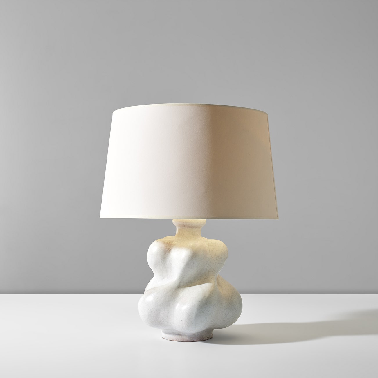 French | B. 1910 D. 1964Working out of his studio in Paris (and later in Aix-en-Provence), Georges Jouve produced sculptural ceramics for modernist interiors. Upon the invitation of Jacques Adnet, the director of the Compagnie des Arts Français (CAF), Jouve participated in various salons internationally and within France, including the Salon des Artistes Décorateurs. He created rigorously simple yet soft and playful forms, including plump, contrapposto vessels, rotund pitchers and cylindrical vases. His tireless experimentation of glazes led to a palette of perfect matte blacks, bone whites and joyful pops of lime green, lemony yellow and, occasionally, selenium red. Jouve's ceramics echo the organic modernism of his CAF colleagues, such as Charlotte Perriand and Serge Mouille.