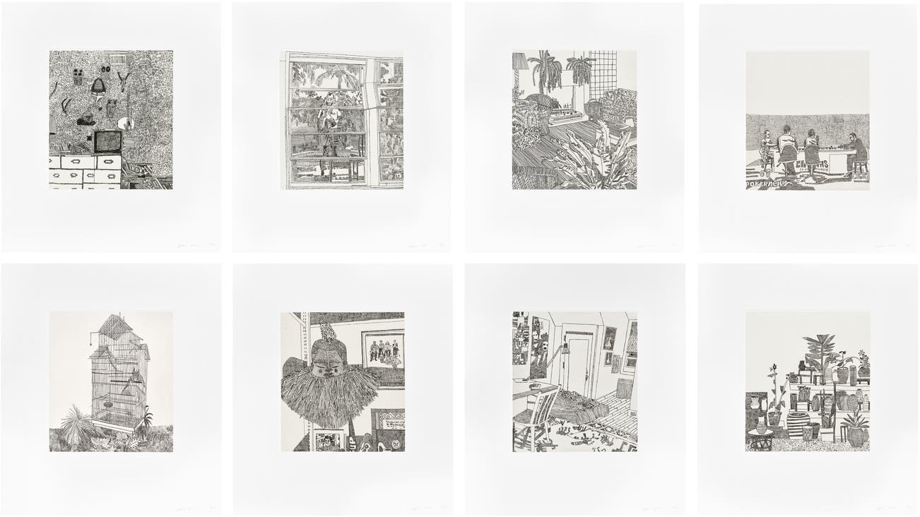 全組8幅蝕刻版畫 粘於英國索馬賽特版畫紙本(四周留邊)缺少原裝白色布面翻蓋盒