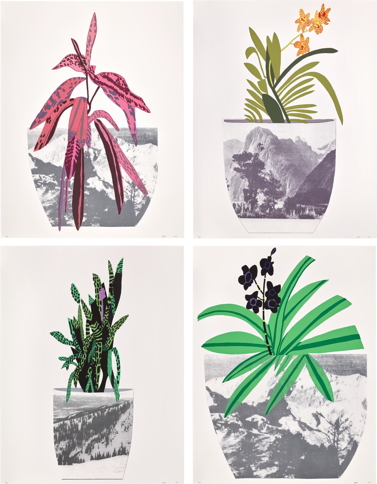 全組4幅石版畫及絲印版畫 考文垂布漿紙本(四周留邊)