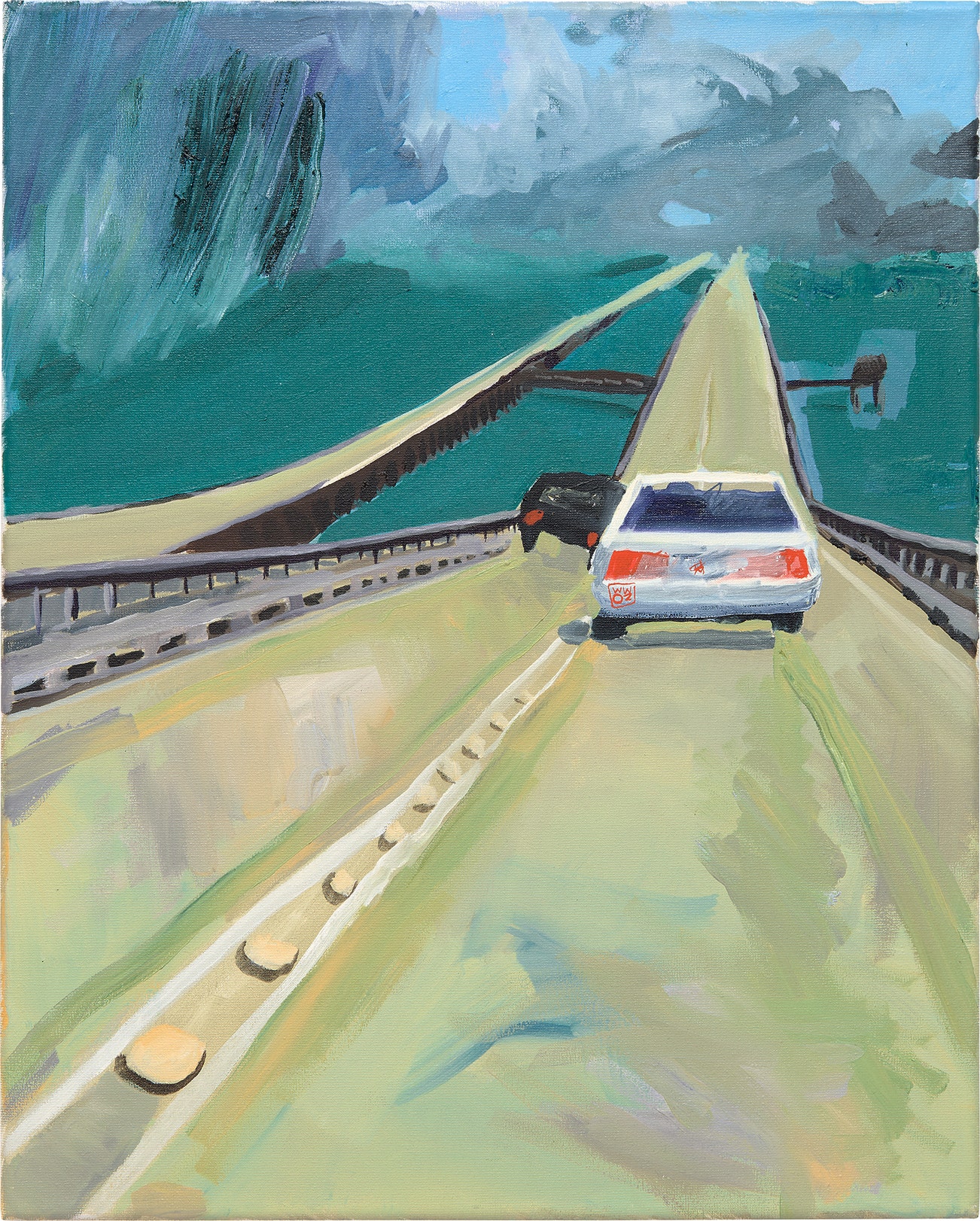 款識:Celeste Dupuy-Spencer 2016 "Lake Pontchartrain Causeway"(畫背)