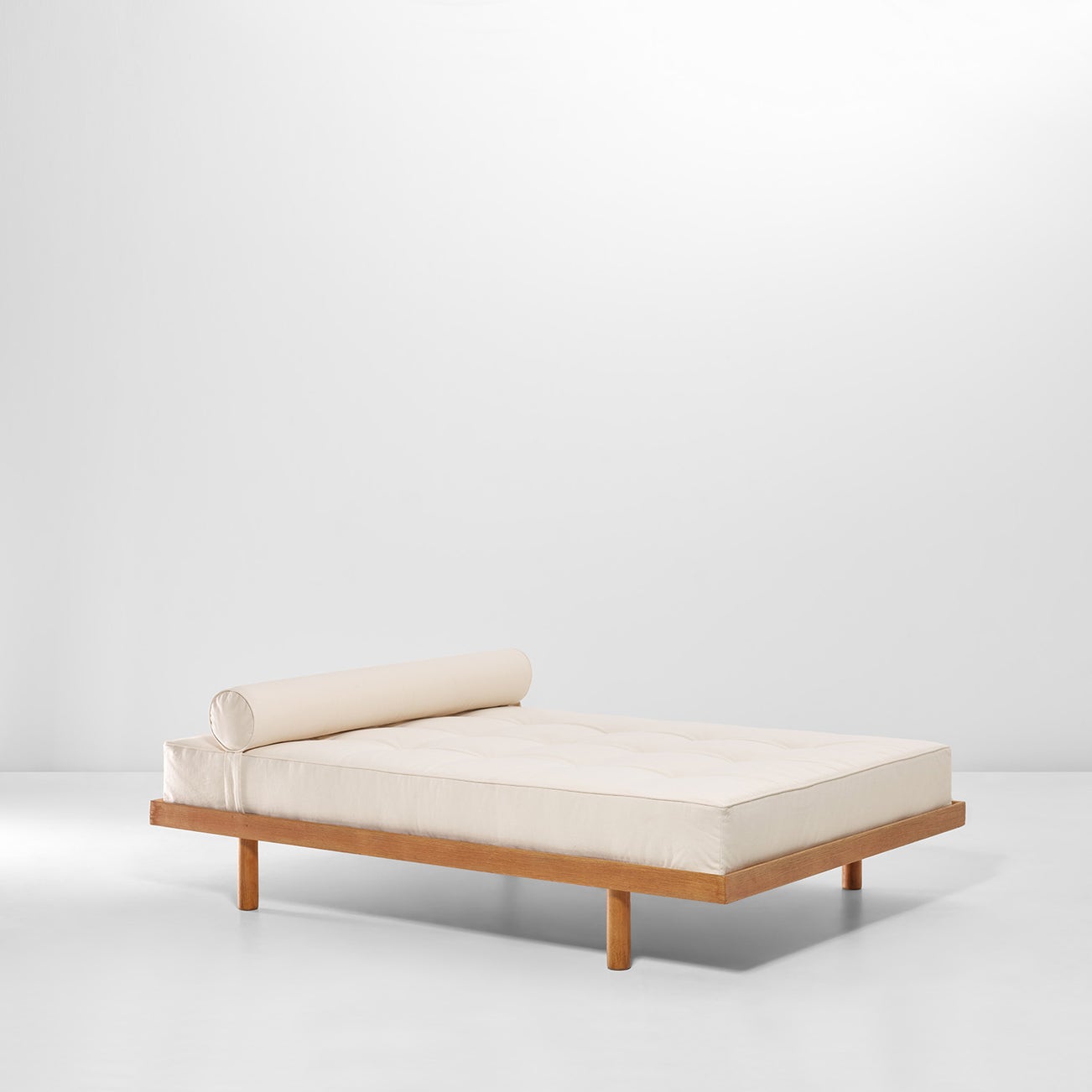 On the heels of this success, that same year she joined the Paris design studio of Le Corbusier and his cousin Pierre Jeanneret. For ten years the three collaborated on "equipment for living," such as the iconic tubular steel B306 Chaise Longue (1928). After World War II, Perriand joined forces with Jean Prouvé to create modernist furniture that combined the precise lines of Prouvé's bent steel with the soft, round edges and warmth of natural wood.