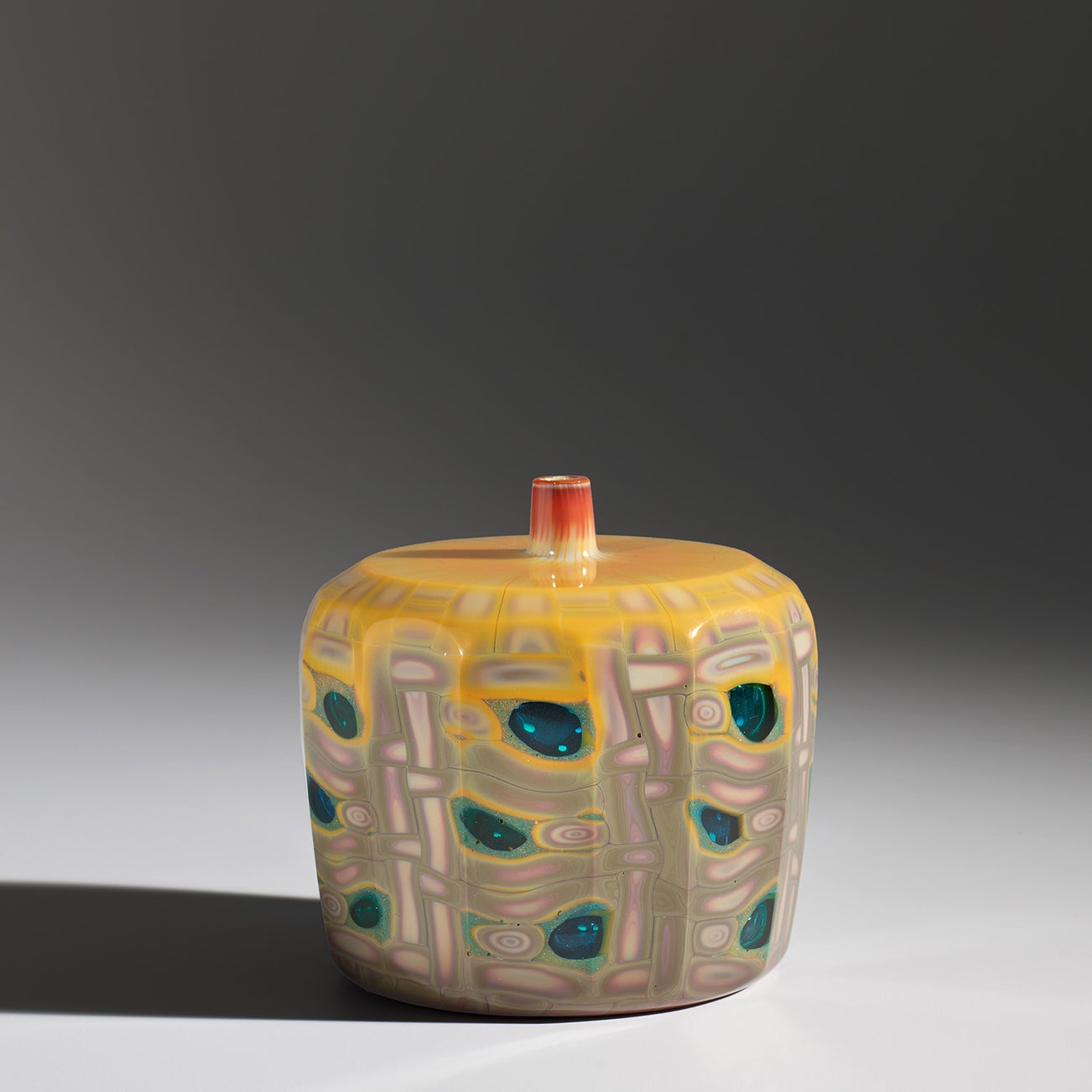 Glass art – hard, fragile, cold and often heavy – is not typically designed to be handled. Yoichi Ohira's luminous blown glass vessels, however, offer an exception to this trend. They are small and light enough to be turned in one's hands like a Wunderkammer specimen, inviting the viewer to admire his abstracted design vocabulary of gemstones, polished ivory, veined rocks, shimmering water, agate, moss and lichens. Ohira has been compared to Emile Gallé for his ability to emulate the natural world in glass. Comparisons may also be drawn to Jean Dunand's bronze vessels, Japanese rokusho patina and Otto Natzler's volcanic glazes – an impressive range of media to be translated into glass.