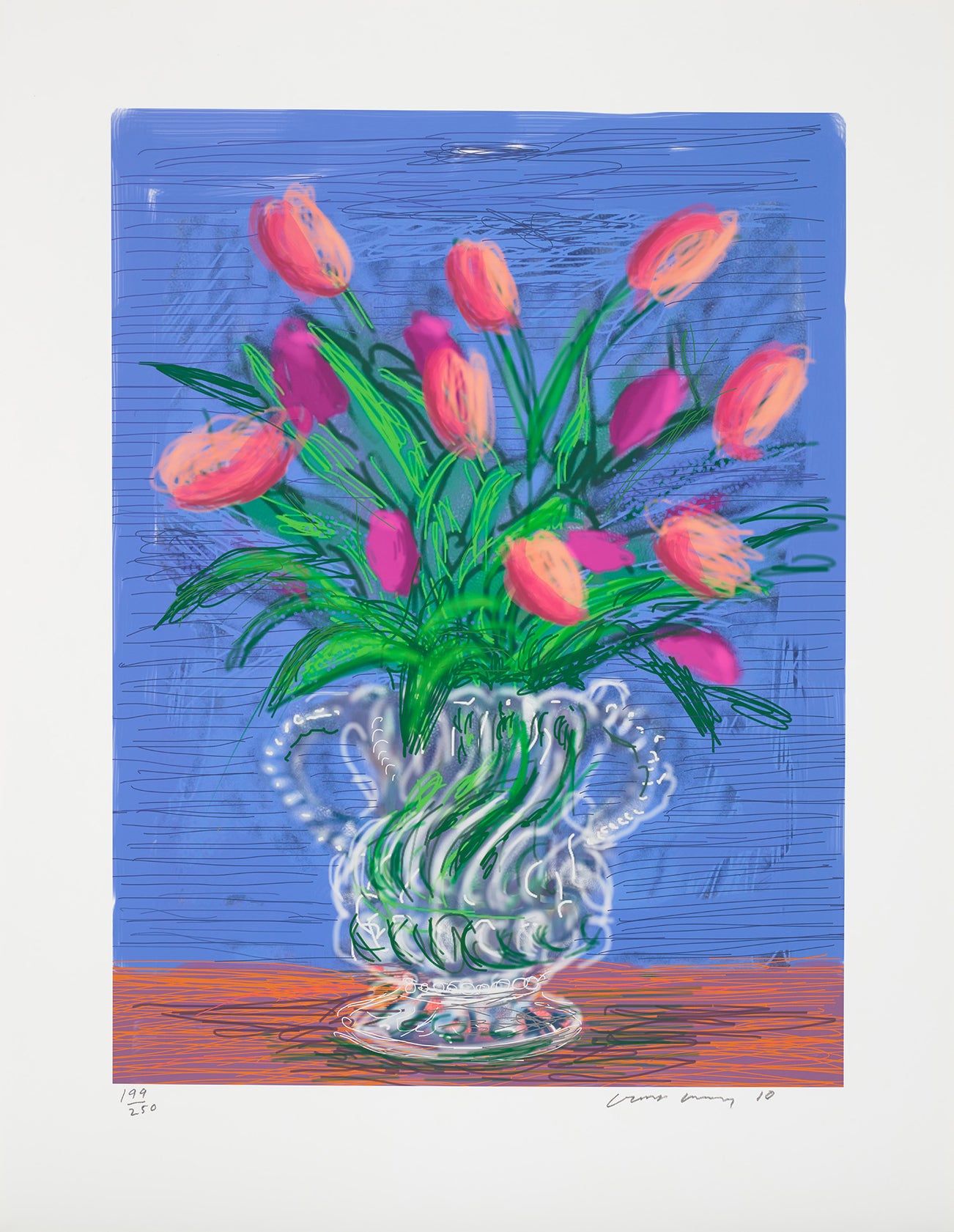Hockney has exhibited at the Museum of Modern Art in New York, the Royal Academy of Arts in London, and the Van Gogh Museum in Amsterdam, among many other institutions. On the secondary market, his work has sold for more than $90 million.