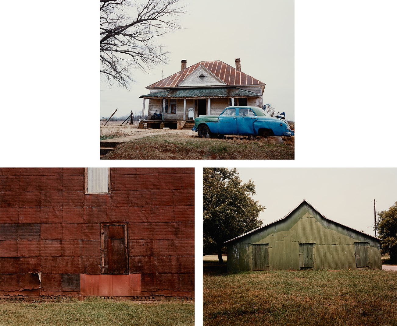 Titles include: Green Warehouse, Newbern, Alabama, 1978; Side of Warehouse, Newbern, Alabama, 1978; House and Car, Near Akron, Alabama, 1981