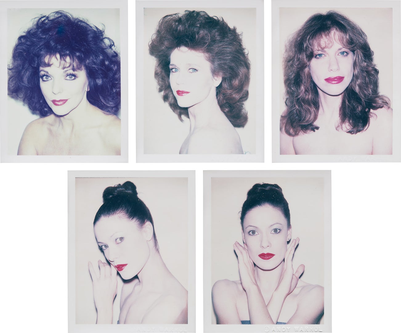 五件作品:(i)《瓊.柯林斯》; (ii)《珍.方達》; (iii)《卡莉.西蒙》; (iv)《凱倫.凱恩》; (v)《凱倫.凱恩》