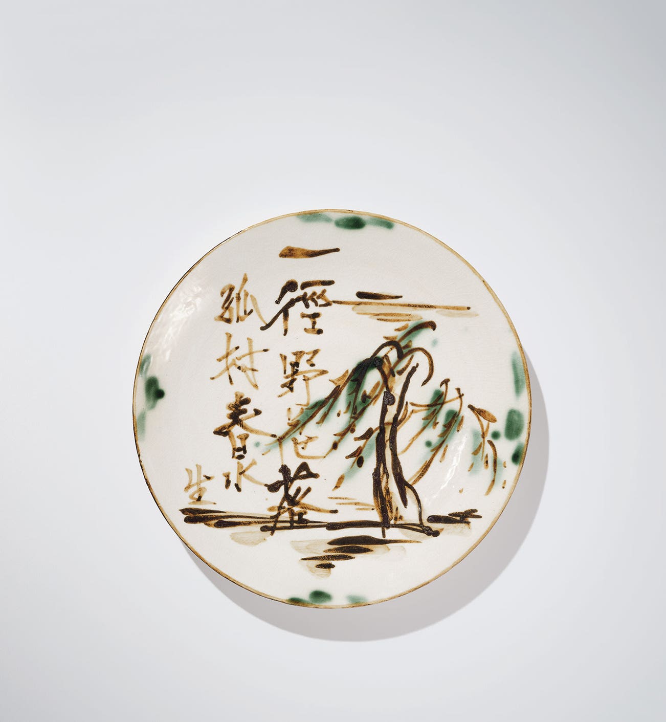 For the present dish Kenkichi Tomimoto incorporated a line from a poem by the Tang dynasty poet 杜甫(Du Fu): 一徑野花落 (The wild flowers are fallen on the lane), 孤村春水生 (The spring rain fallen on the quiet village).