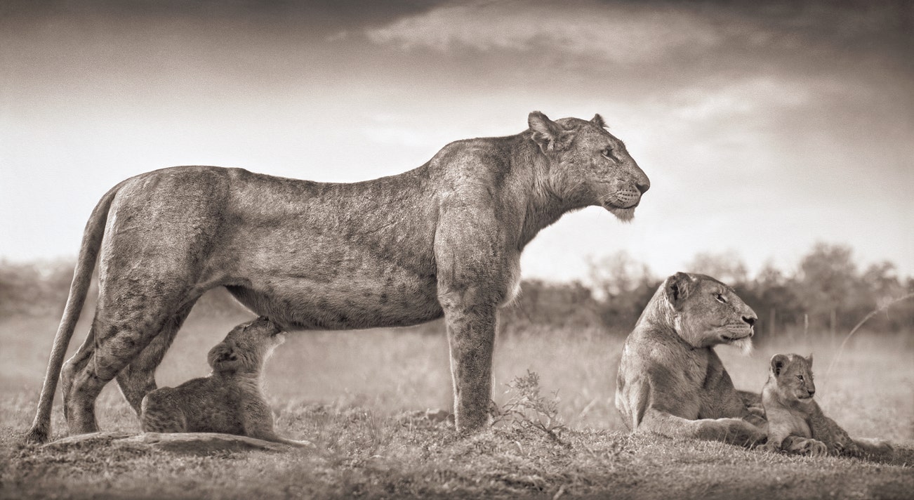 《母獅餵養幼崽,馬賽馬拉》