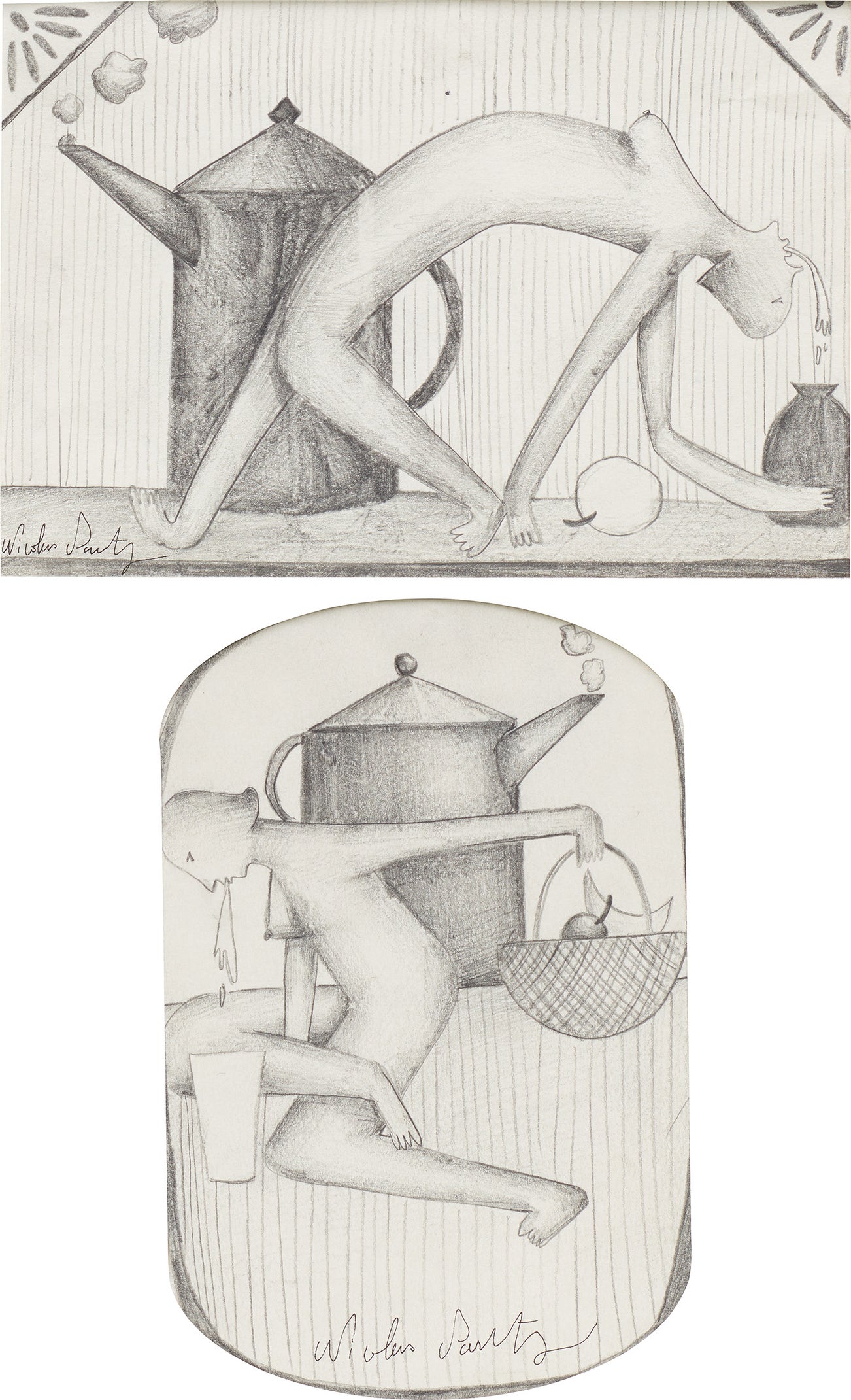 兩件作品:(i)《咖啡壺和吐口水的雜技人》;(ii)《咖啡壺和吐口水的女人》
