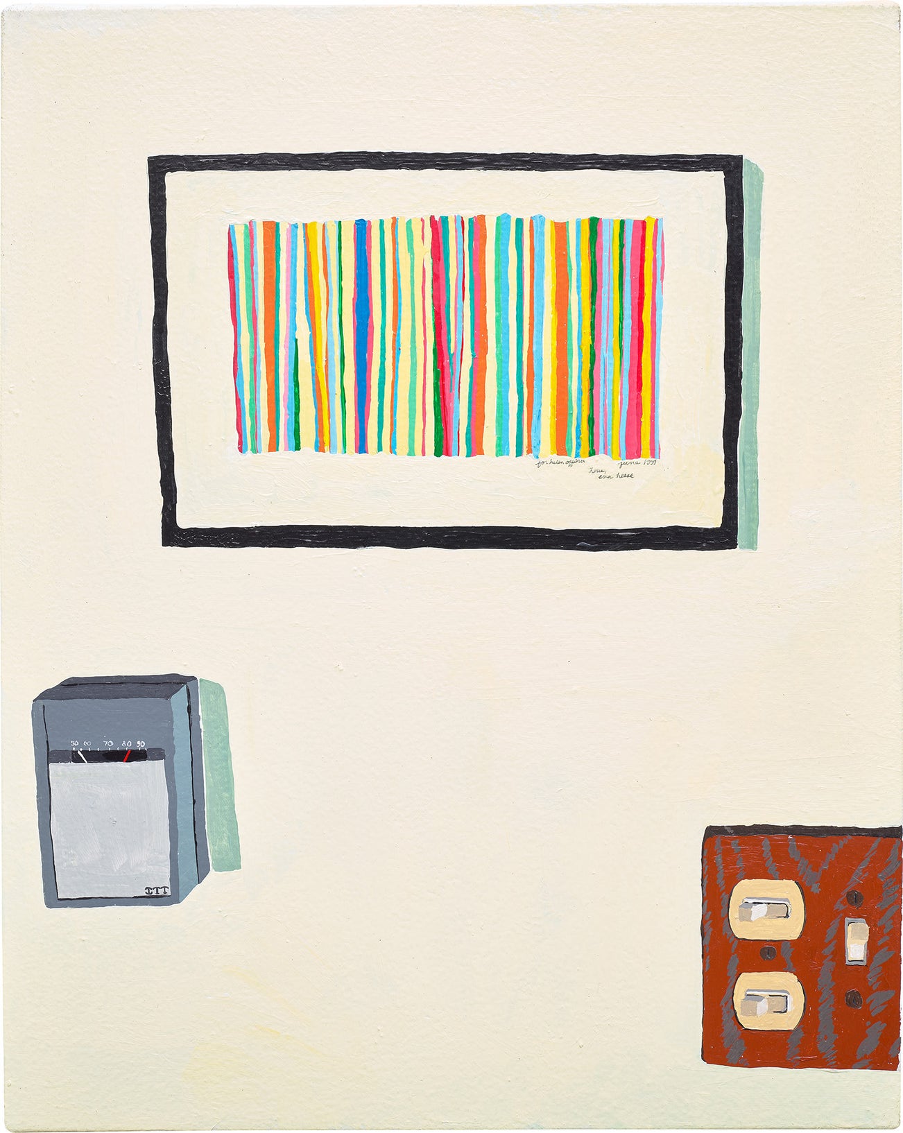 款識:Hilary Pecis thermostat, Eva and switch.(畫背)