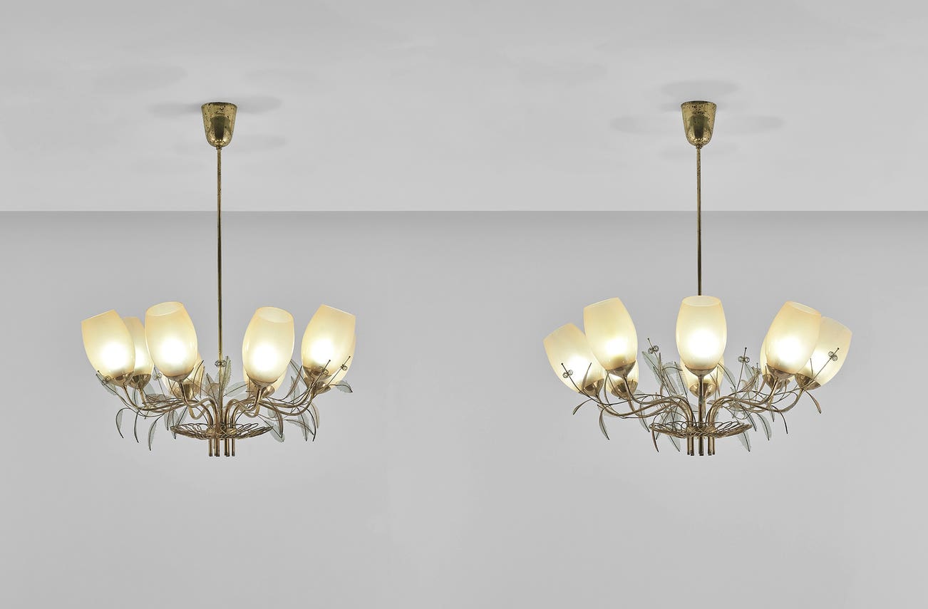 Pair of eight-armed ceiling lights, model no. 9029/8, from the 'Concerto' series