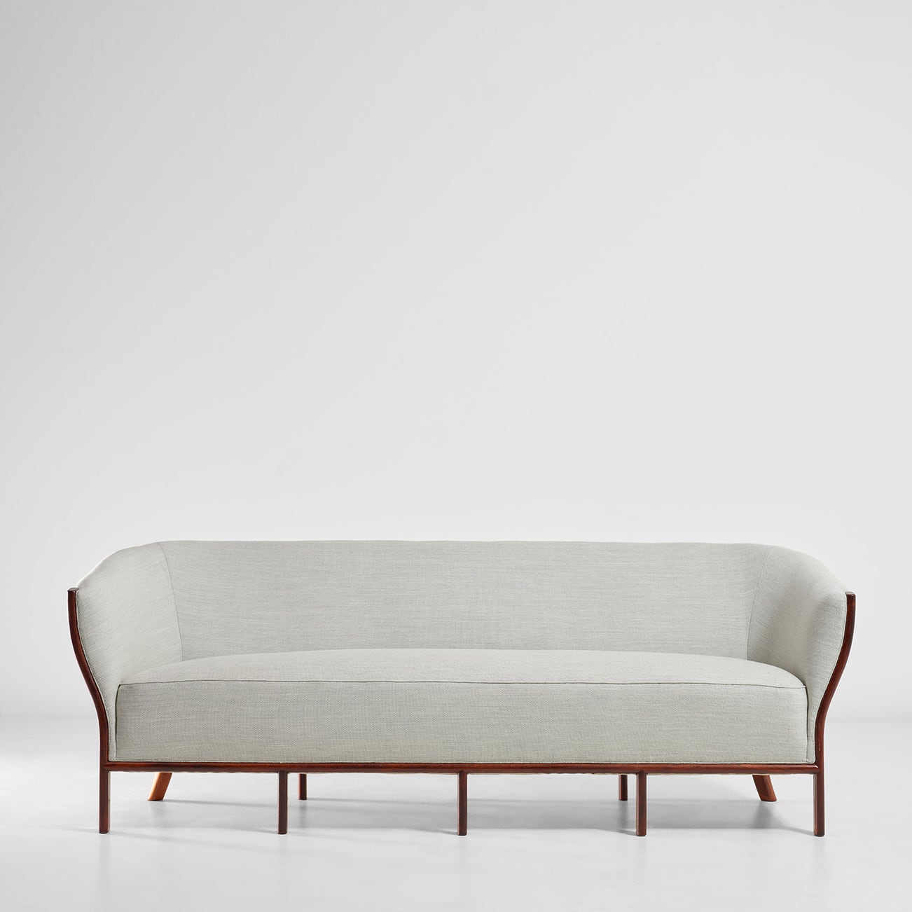 A consisting part of modern Danish design was the architect’s capacity to work in a variety of scales - often a given project encompassed the shaping of the surrounding landscape, the construction, and the interior decoration. The present set of furniture from the Nyegaard villa is crafted in Brazilian rosewood with metal details. The combinations of wood and metal are emphasized in the shapes of the furniture. The softly rounded wood is contrasted in the clarity of the well-defined transition from leg to armrest. Reflections on traditional furniture are visible in the execution of the pieces, which are meticulously made and show exquisite craftsmanship. The constellation of forms creates a unity of elegance and function. The works of Frits Schlegel cover buildings in the Copenhagen Zoo, official buildings, villas furniture and lighting design. The mass of his concrete uses in architecture contrasts with the delicate features of his furniture designs. His works holds a variety of details to be examined close by or from afar, showing Schlegel´s capacity to operate in different scales.