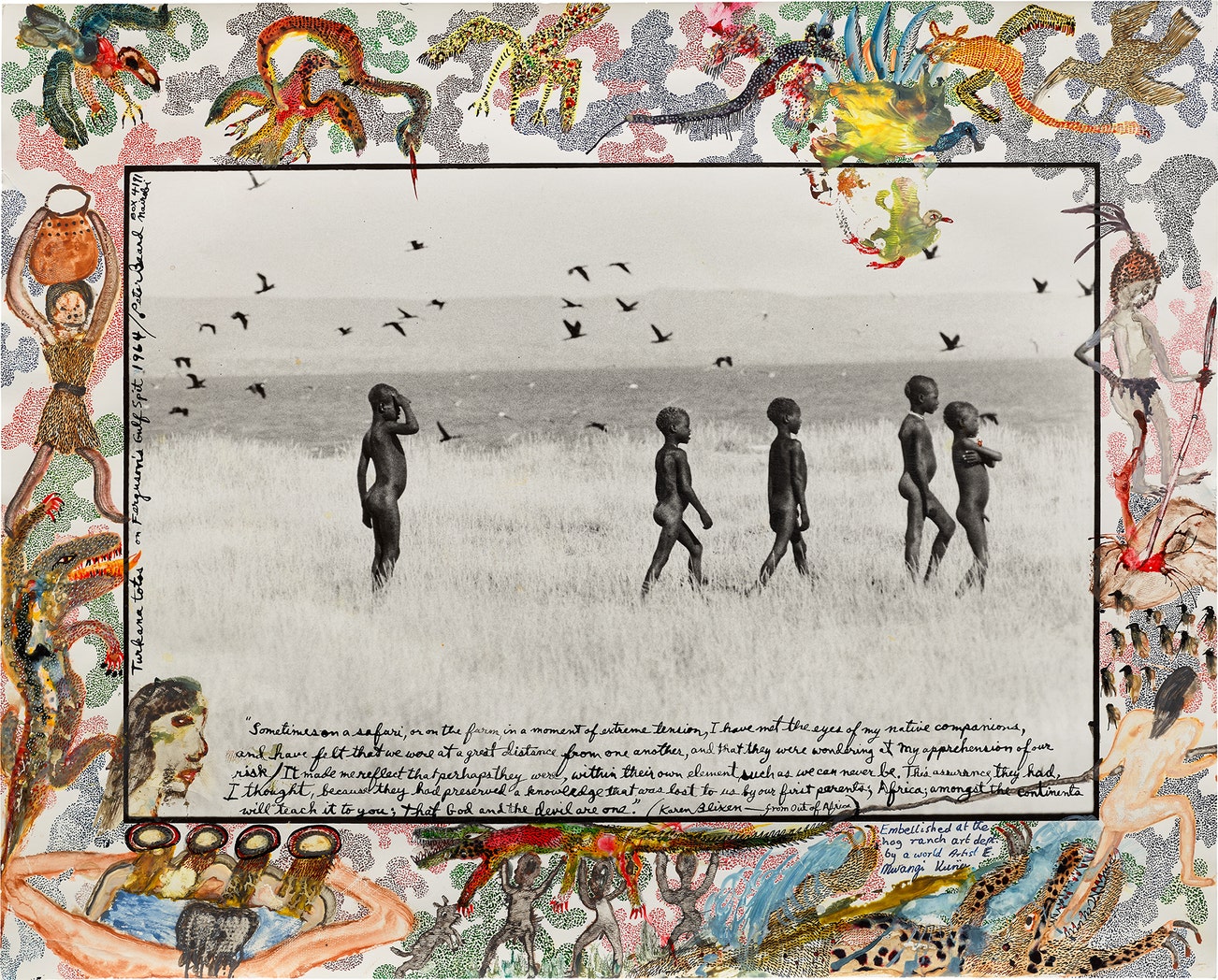 銀鹽照片 水彩 蛋彩 原圖來自豬場藝術部的藝術家E. Mwangi Kuria(後畫)