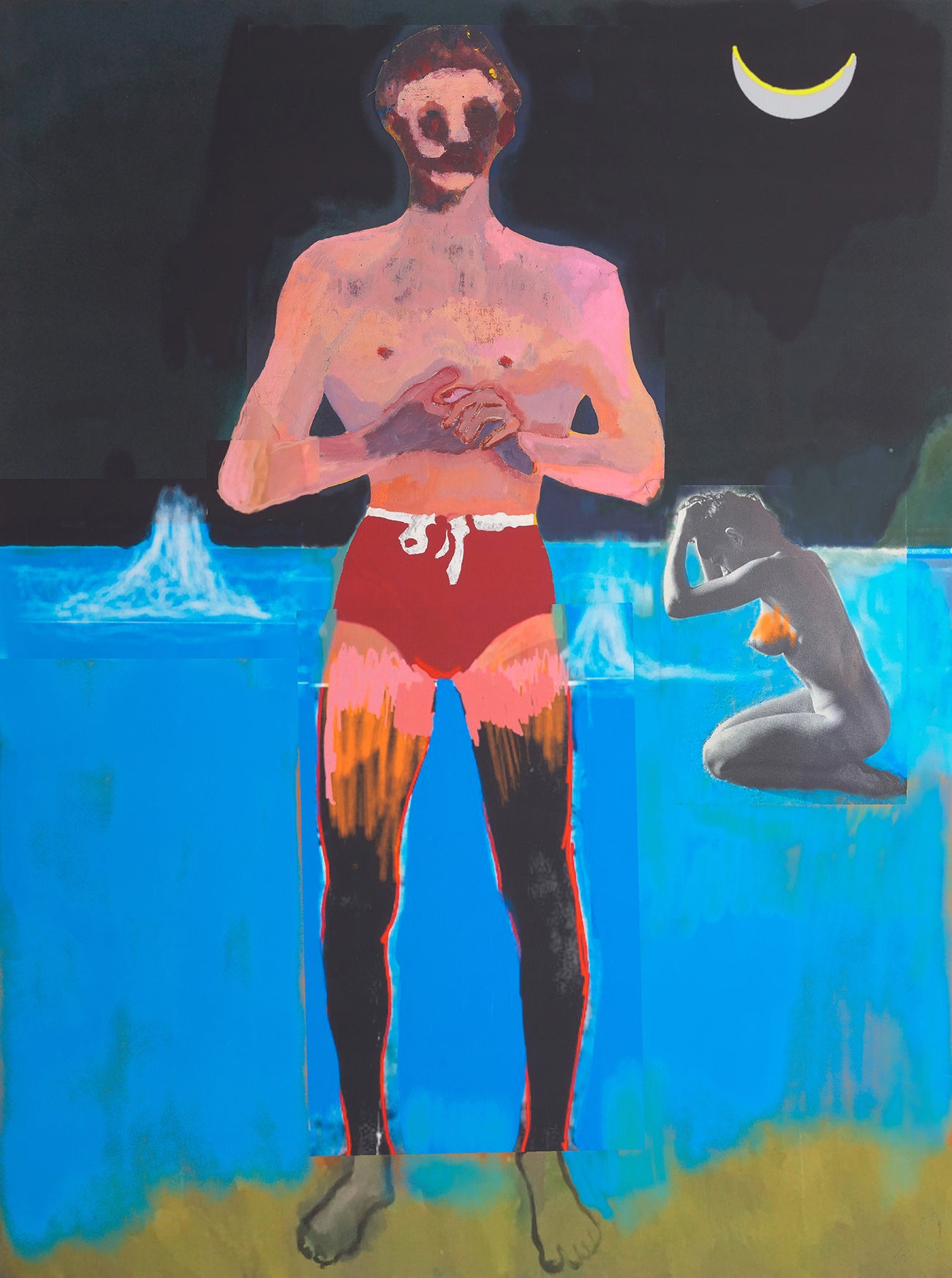 Doig draws on personal memories and source imagery in his pursuit of exploring the slippage between reality, imagination and memory through painting. The material properties of paint and expressive possibilities of color thereby serve to approximate the foggy, inarticulate sensation of remembering. His practice maintains a thin and balanced line between landscape and figure, superimposing photographic imagery and memories, both real and imagined.