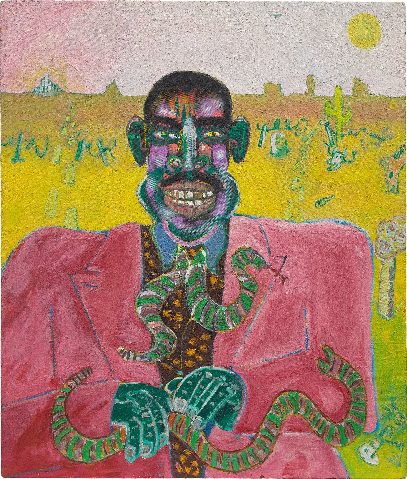Doig draws on personal memories and source imagery in his pursuit of exploring the slippage between reality, imagination and memory through painting. The material properties of paint and expressive possibilities of color thereby serve to approximate the foggy, inarticulate sensation of remembering. His practice maintains a thin and balanced line between landscape and figure, superimposing photographic imagery and memories, both real and imagined.