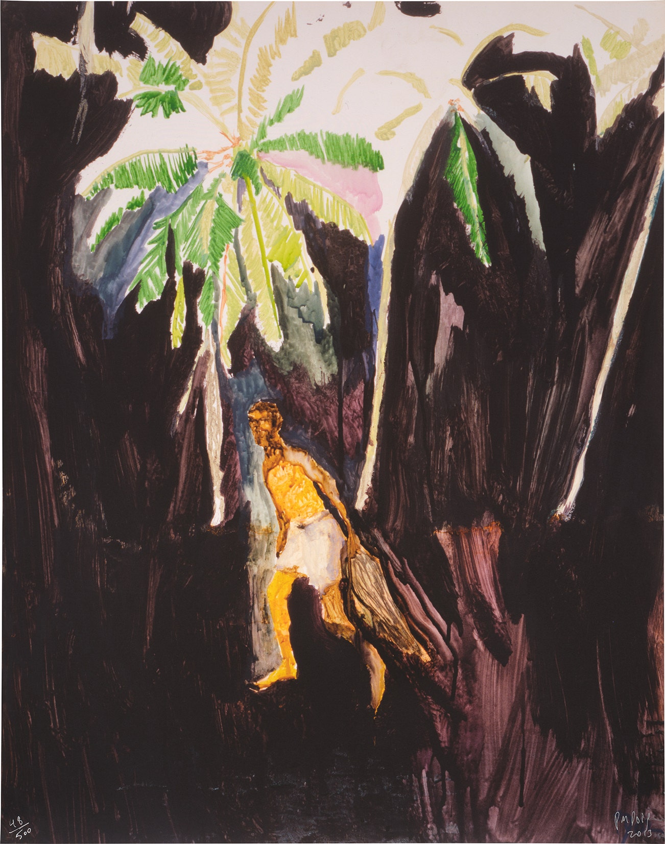 Doig draws on personal memories and source imagery in his pursuit of exploring the slippage between reality, imagination and memory through painting. The material properties of paint and expressive possibilities of color thereby serve to approximate the foggy, inarticulate sensation of remembering. His practice maintains a thin and balanced line between landscape and figure, superimposing photographic imagery and memories, both real and imagined.