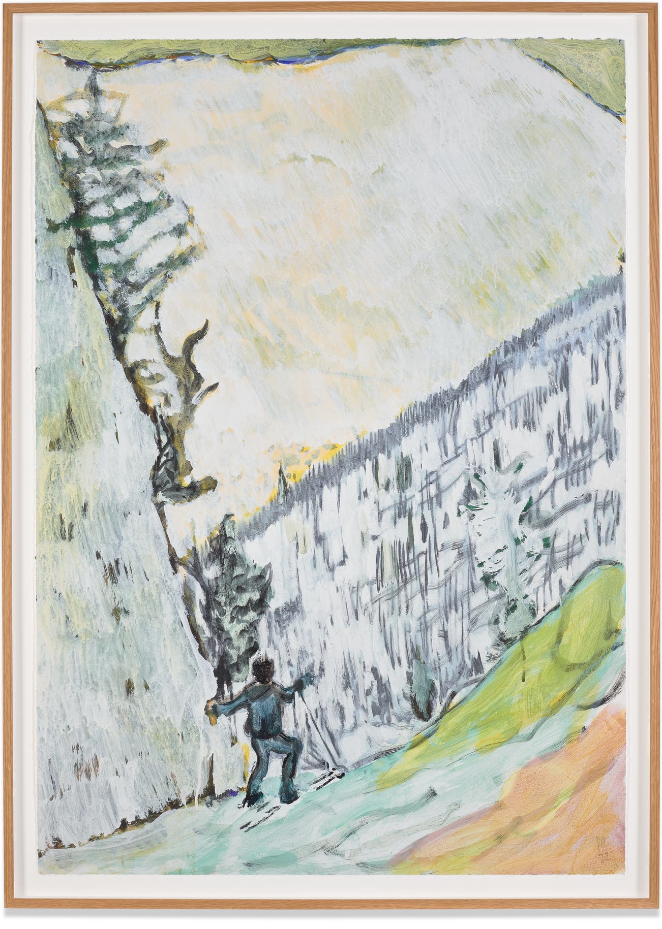Doig draws on personal memories and source imagery in his pursuit of exploring the slippage between reality, imagination and memory through painting. The material properties of paint and expressive possibilities of color thereby serve to approximate the foggy, inarticulate sensation of remembering. His practice maintains a thin and balanced line between landscape and figure, superimposing photographic imagery and memories, both real and imagined.