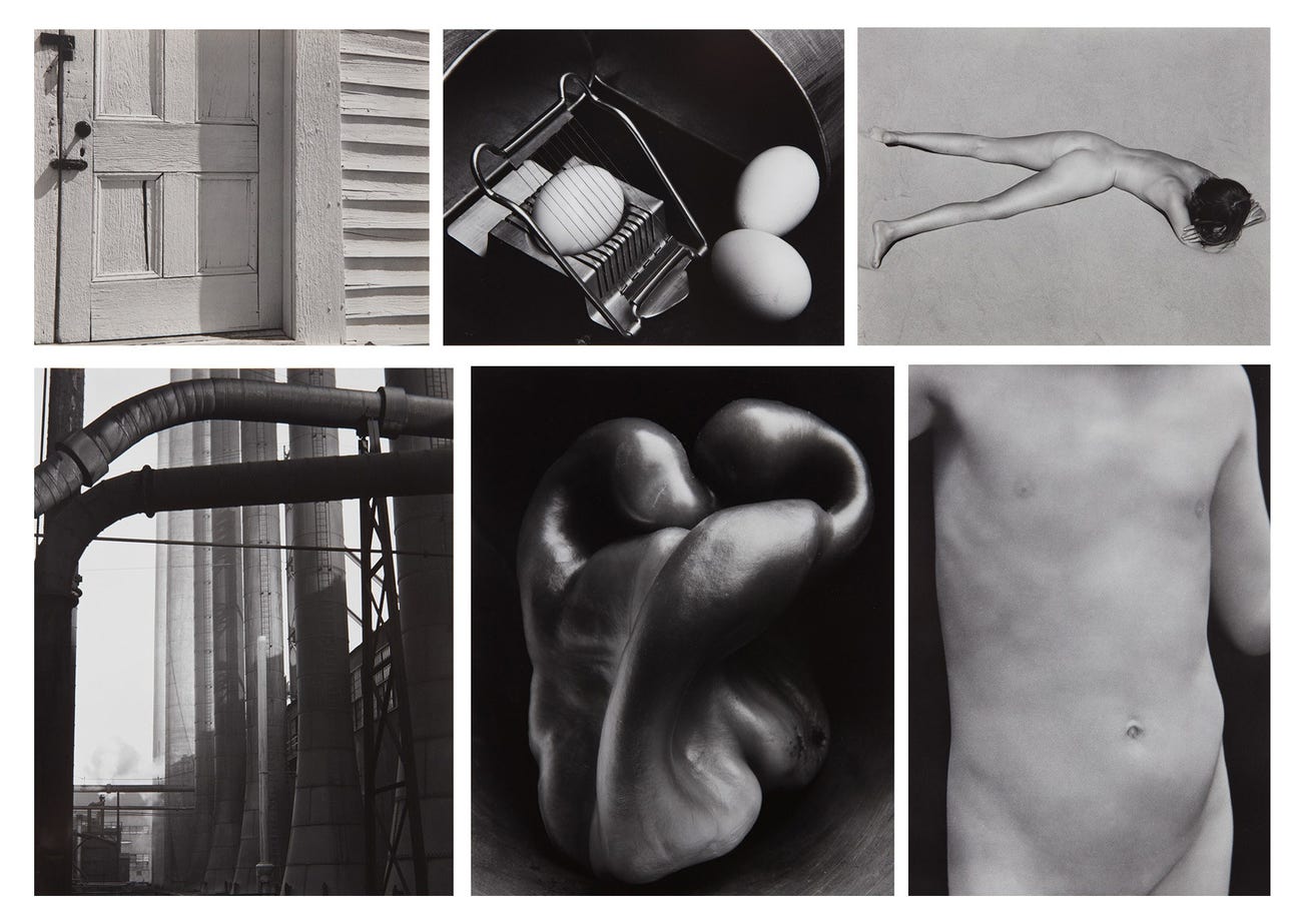 Church Door, Hornitos, 1940; Eggs and Slicer, 1930; Nude, 1936; Armco Steel, Ohio, 1922; Pepper No. 30, 1930; Nude, 1925