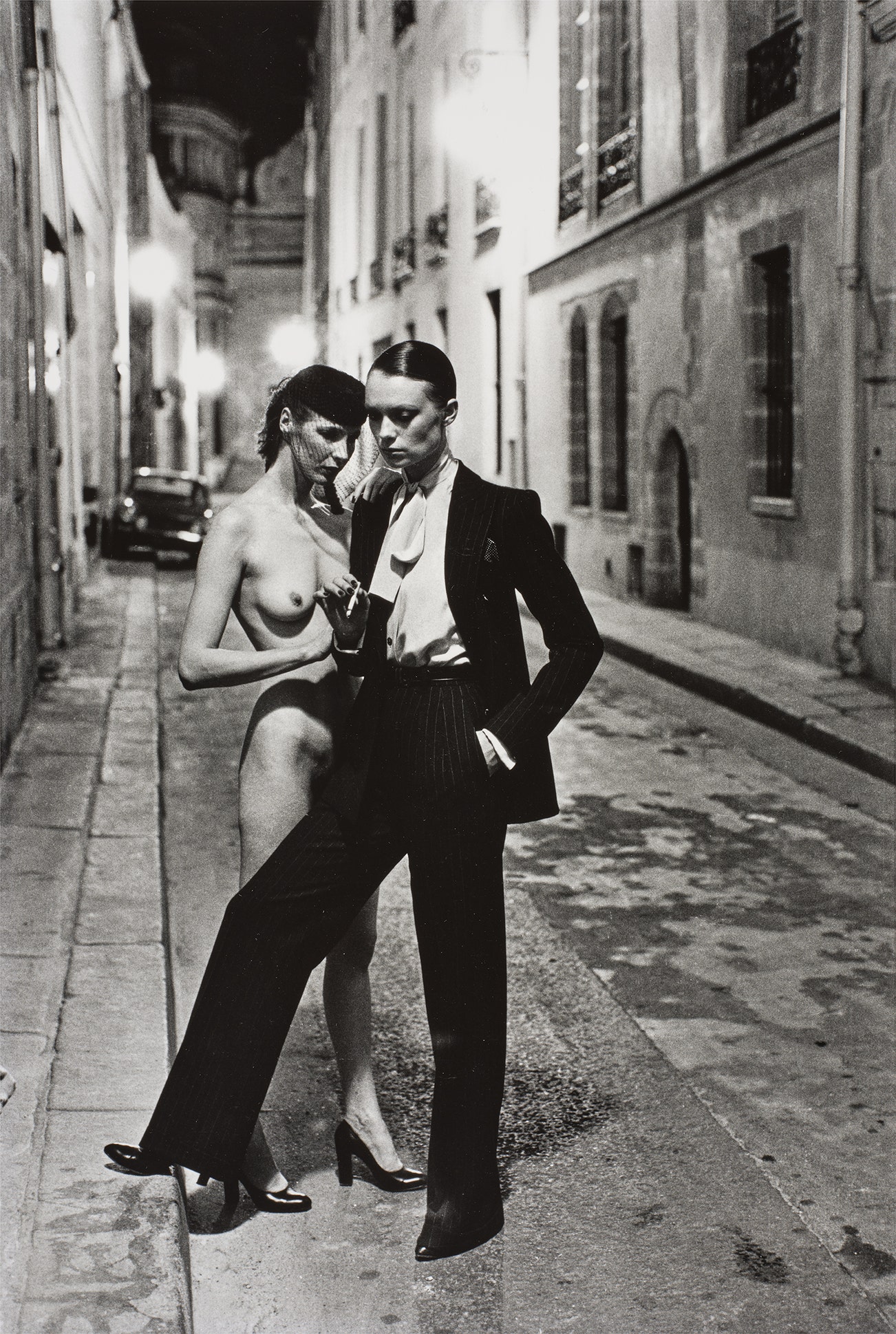 Newton created a working space for his models that was part decadent and part unorthodox — a safe microcosm in which fantasies became reality. And perhaps most famously of all, Newton engendered an environment in which his female models claimed the space around them with unapologetic poise and commanding sensuality. His almost cinematic compositions provided a hyper-real backdrop for the provocative images of sculptural, larger-than-life women, and enhanced the themes of voyeurism and fetishism that run throughout his work.