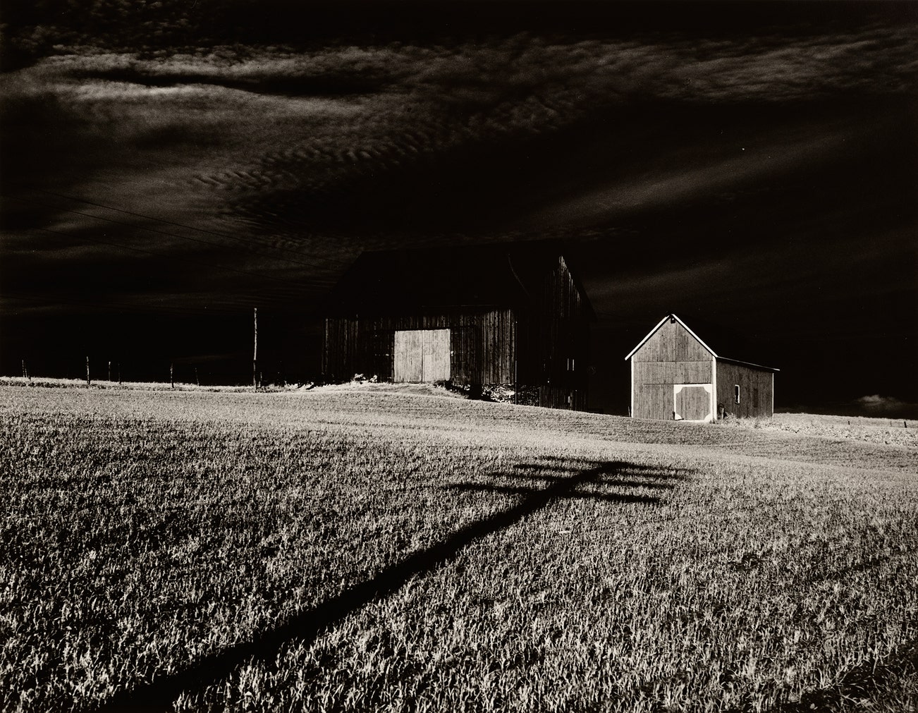 《紐約州丹斯維爾附近的兩個穀倉和影子》