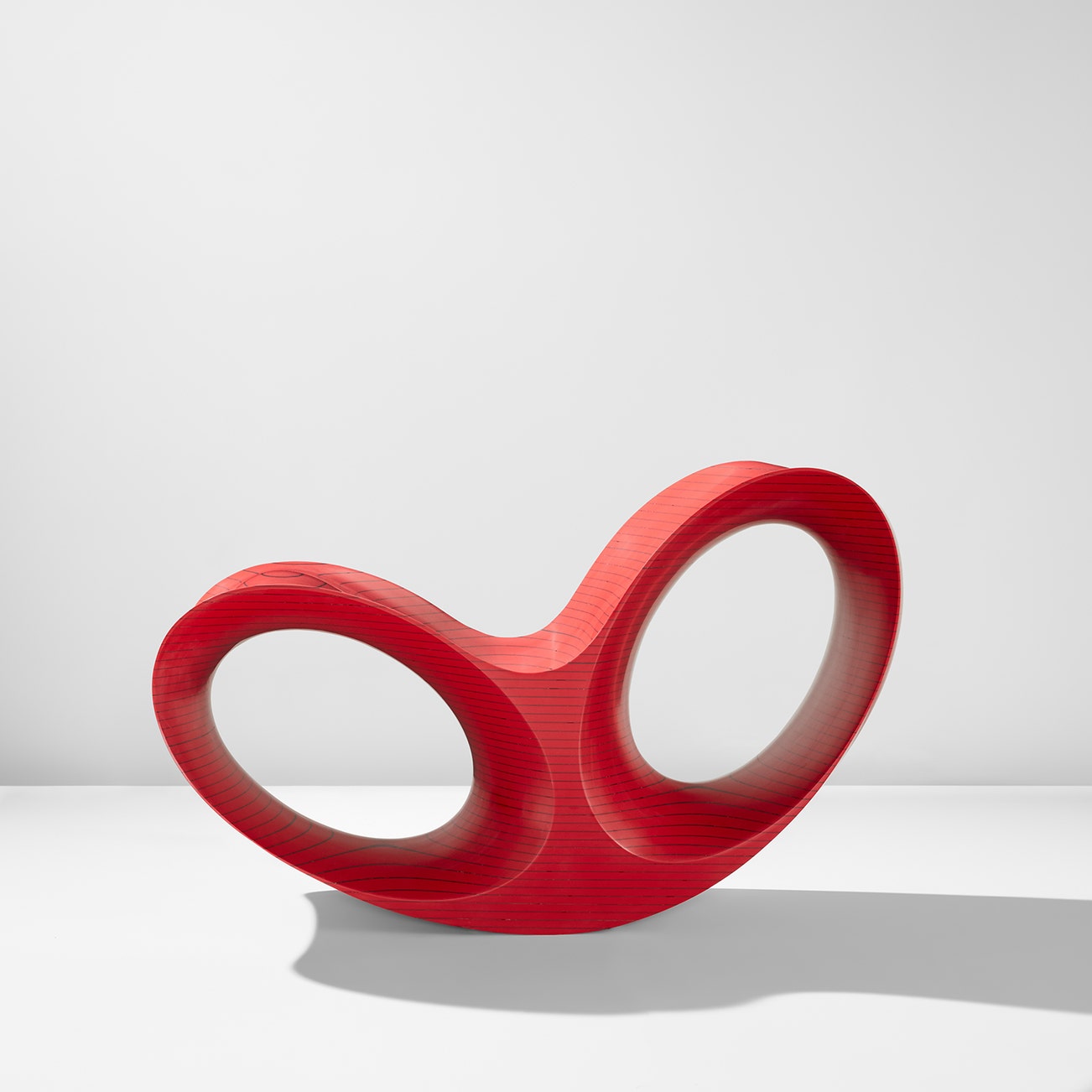 A persistent theme throughout his work is innovation and the idea of the "new." Still producing work today, Arad uses the latest technology to produce his designs and also integrates it within his pieces, such as his Lolita Chandelier (2004) that can receive and display text messages. Arad also continually experiments with materials and has an exceptional skill to coax volume and undulation out of them, with a particular affinity for metal. His works such as The Big Easy chair (1988) walk the line between design and sculpture. Once an outsider, Arad's relentless energy to design, build and collaborate has placed him firmly within the highest ranks of the design world.