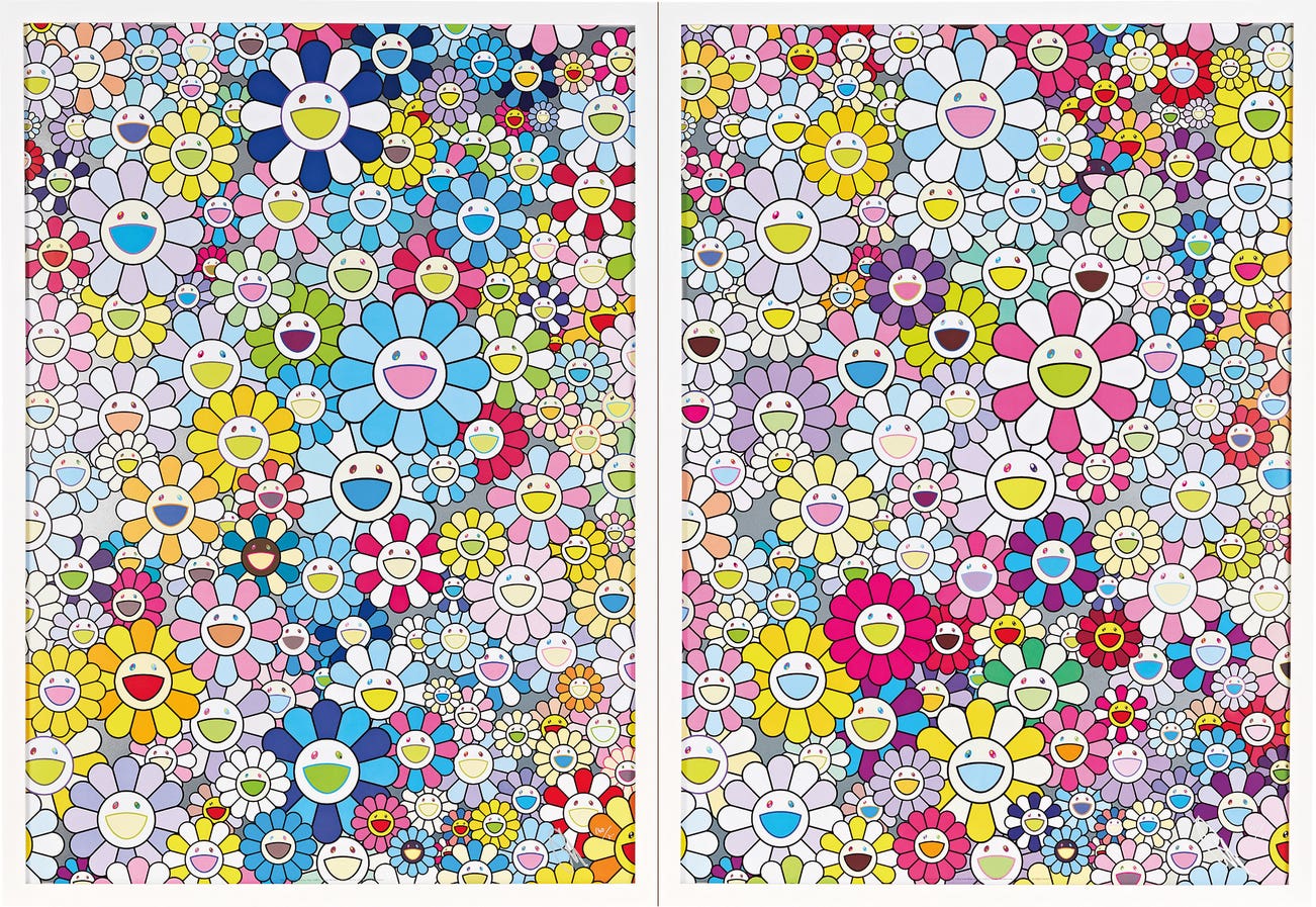 In the 1990s, Murakami founded the Superflat movement in an attempt to expose the "shallow emptiness of Japanese consumer culture." The artist plays on the familiar aesthetic of mangas, Japanese-language comics, to render works that appear democratic and accessible, all the while denouncing the universality and unspecificity of consumer goods. True to form, Murakami has done collaborations with numerous brands and celebrities including Kanye West, Louis Vuitton, Pharrell Williams and Google.