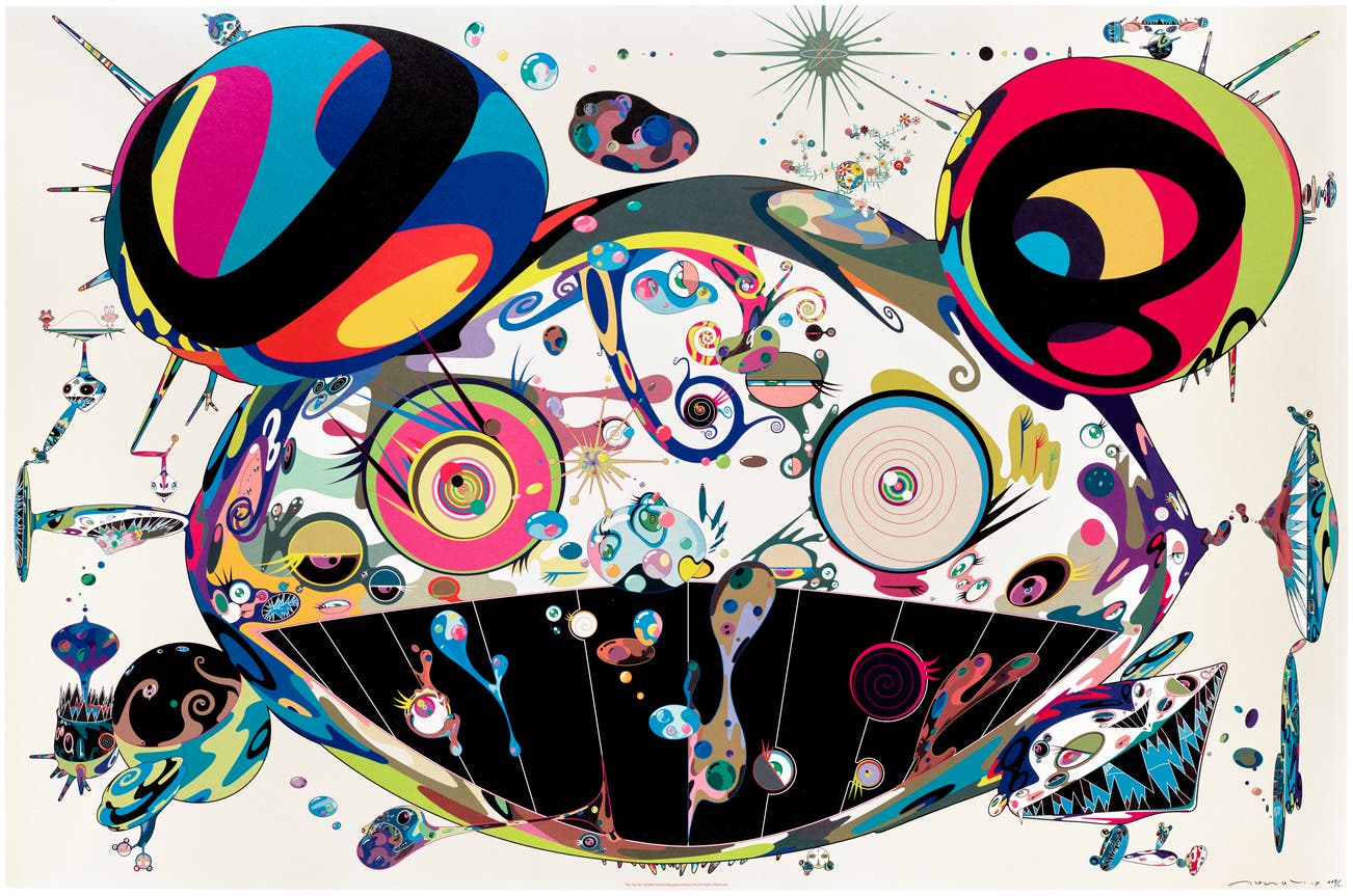 In the 1990s, Murakami founded the Superflat movement in an attempt to expose the "shallow emptiness of Japanese consumer culture." The artist plays on the familiar aesthetic of mangas, Japanese-language comics, to render works that appear democratic and accessible, all the while denouncing the universality and unspecificity of consumer goods. True to form, Murakami has done collaborations with numerous brands and celebrities including Kanye West, Louis Vuitton, Pharrell Williams and Google.
