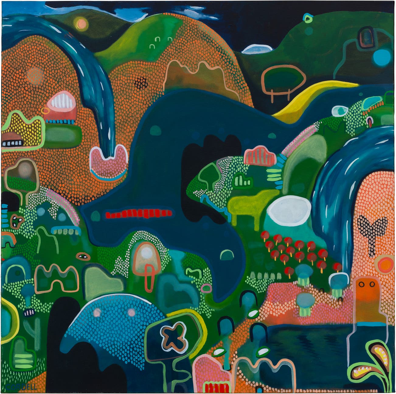 款識:CORDELL(左下);《TWO WATERFALLS》GLENDON CORDELL Glendon Cordell 2022(畫背)